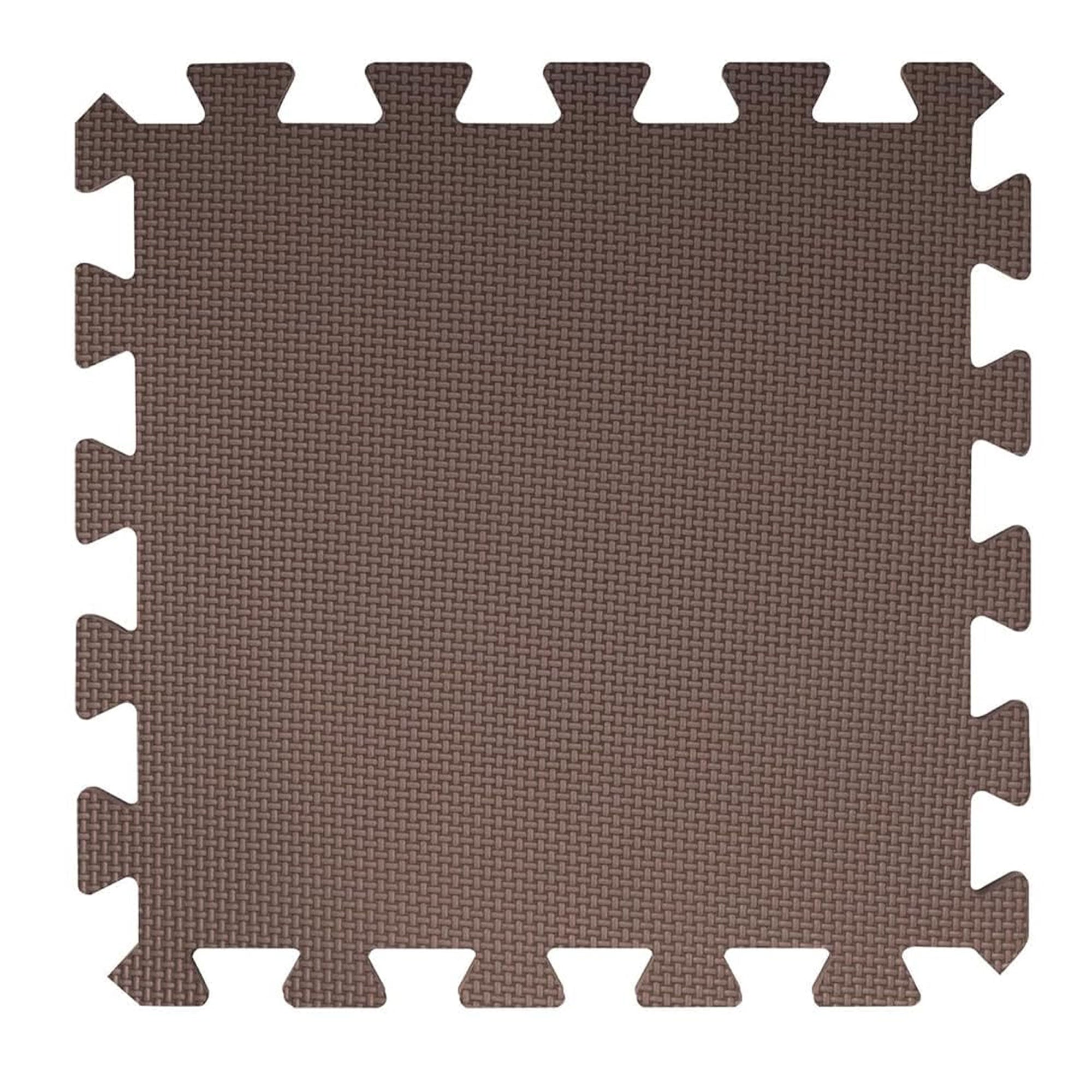 - Com esquema de cores em azul, marrom e bege, este pacote de tapetes interligados cobre até 16 pés quadrados de espaço de jogo, com cada peça medindo 1 pé quadrado