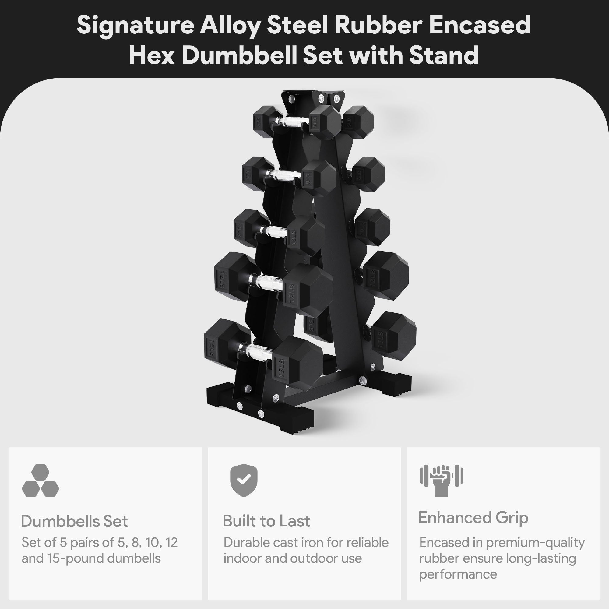 - Ideal para exercícios de corpo inteiro e exercícios específicos para grupos musculares, este conjunto vem com 5 pares de halteres de 5, 8, 10, 12 e 15 libras, adequados para iniciantes e entusiastas do fitness.