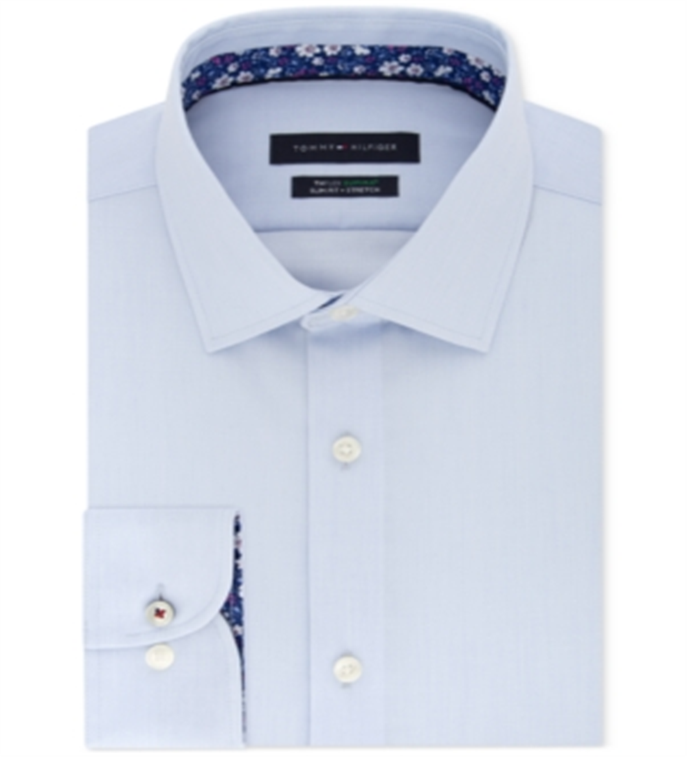 Camisa masculina Tommy Hilfiger de algodão com botões slim fit, azul, tamanho 34-35