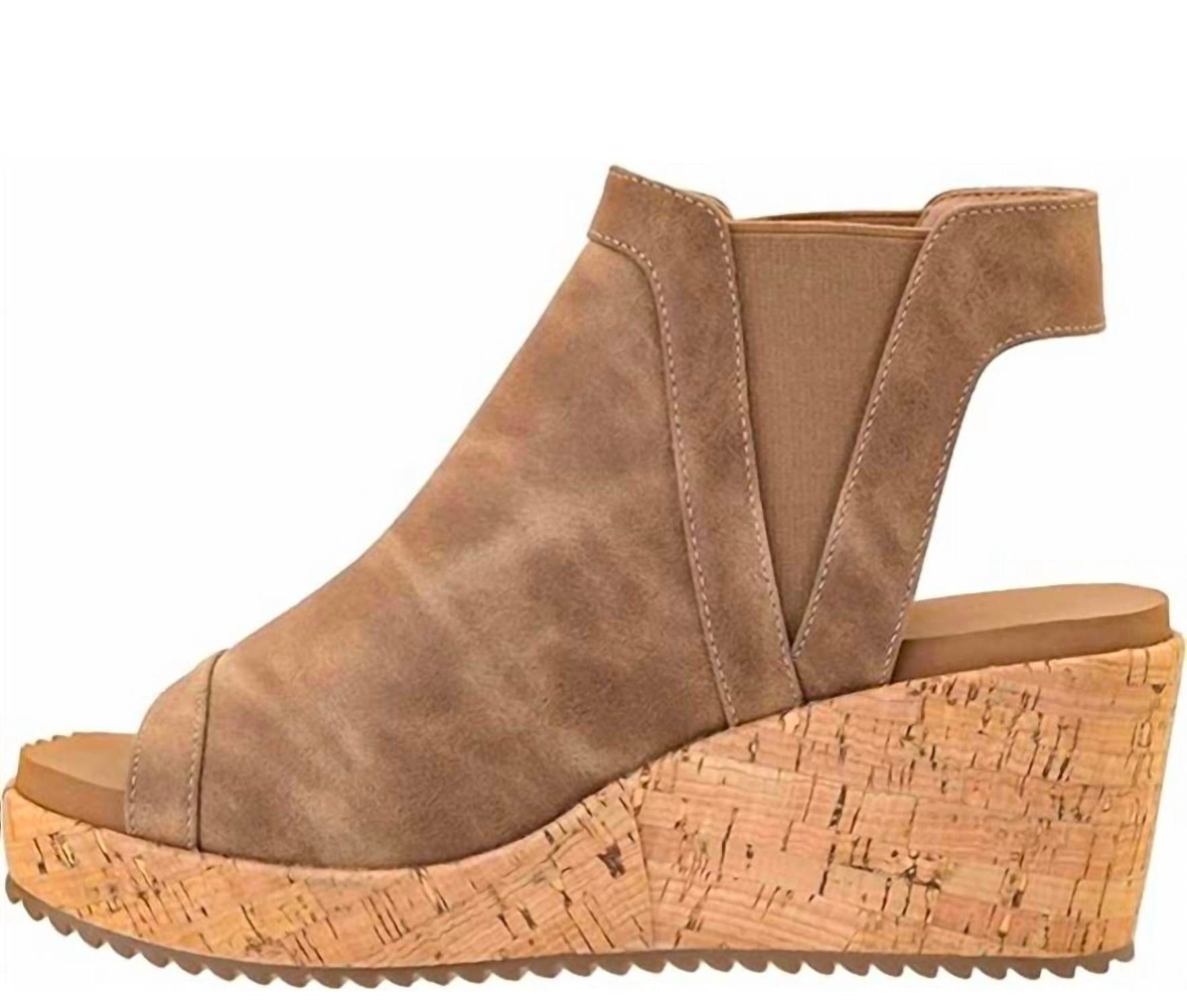 Estas sandálias de cunha apresentam palmilha acolchoada e tiras elegantes, com salto de cunha de 2,5 polegadas e plataforma de 0,75 polegadas.