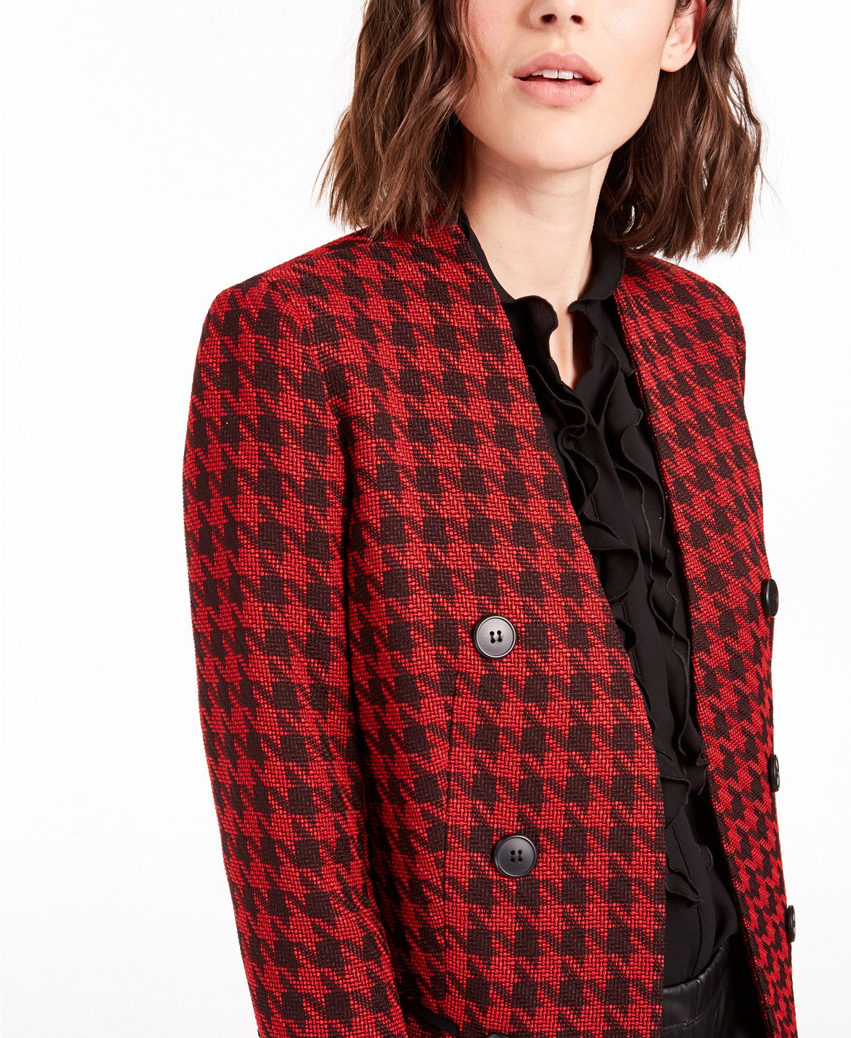 Jaqueta feminina Bar III, sem gola pied-de-poule, abotoada dupla, preta, tamanho 2