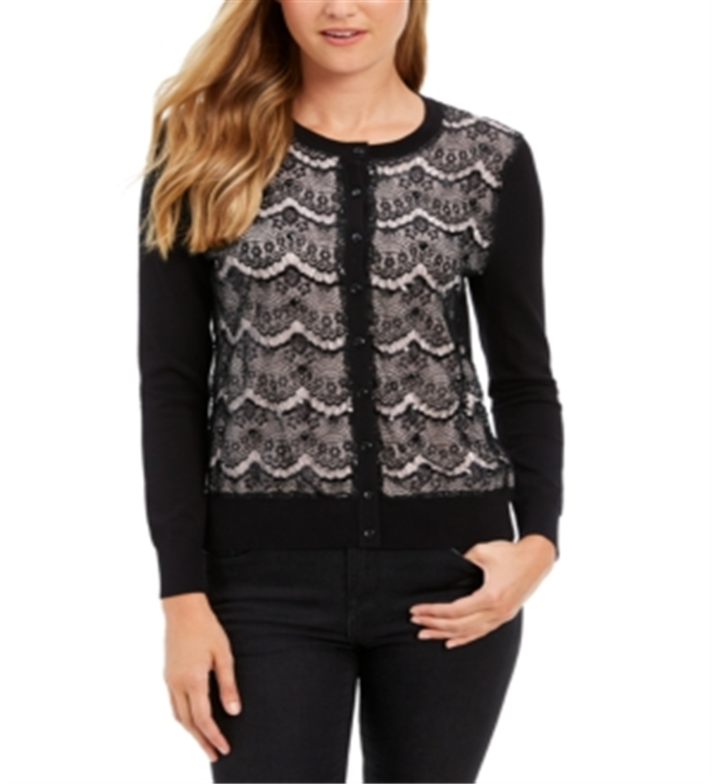 Suéter feminino Charter Club com botões e renda e lantejoulas, rosa, tamanho pequeno