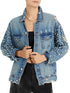 Jaqueta jeans exclusiva com efeito desgastado e detalhes em azul