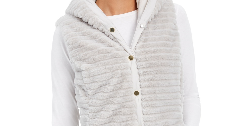 Colete reversível com capuz de pele sintética feminino Charter Club, tamanho X-G, prateado