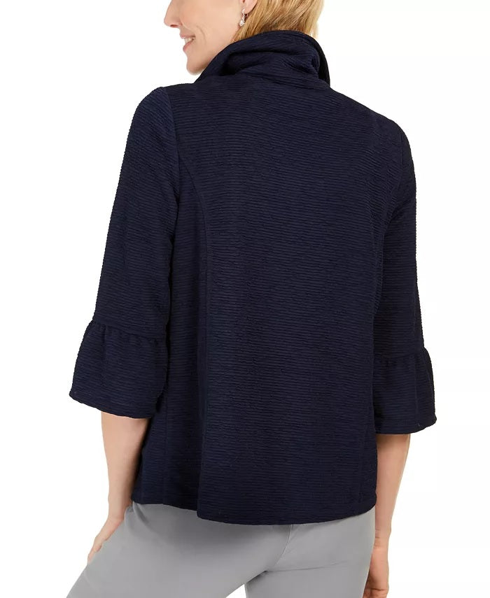Jaqueta feminina texturizada com manga sino da coleção JM, azul, tamanho pequeno