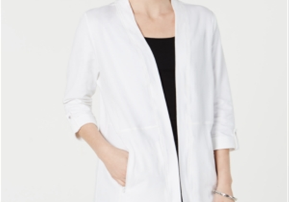 Considere este cardigan aberto e aconchegante como sua camada para levar para qualquer lugar | Feito de algodão com uma quantidade confortável de elasticidade | este visual espaçoso foi projetado com mangas 3/4 dobráveis e bolsos com zíper para o máximo em moda funcional