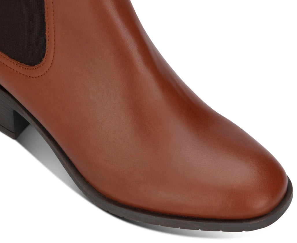 Bota Chelsea Kenneth Cole Comfort Stretch Salt Feminina, bico redondo, salto bloco, sem cadarço, couro, marrom, tamanho 11 M