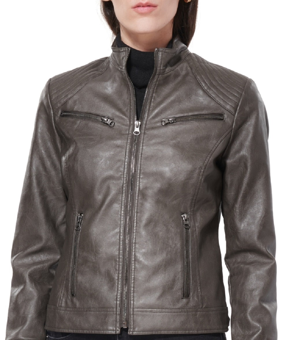 Liberte a motociclista que existe em você com esta jaqueta inspirada em motociclismo da Maralyn & Me, feita em couro sintético elegante e finalizada com quatro bolsos com zíper na frente.