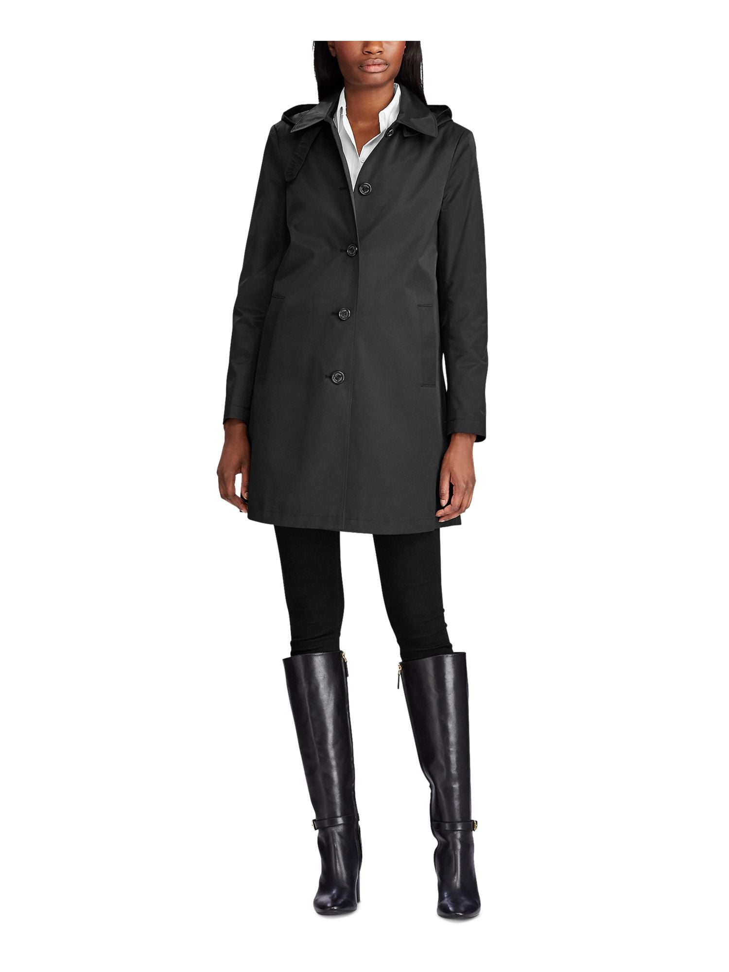 Ralph Lauren Balmacaan Capa de chuva com capuz feminina preta tamanho pequeno extrapequeno