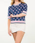 Discover the Bow Print Short Sleeve Sweater by THML, crafted in a luxury knit with an elbow sleeve design. This summer-ready piece is made from a blend of 43% Viscose, 32% Nylon, and 25% Polyester, featuring a charming medium scale bow print. In a captivating Soft Navy Multi color, this sweater offers a crewneck with a comfortable pull-on closure. Hand wash.