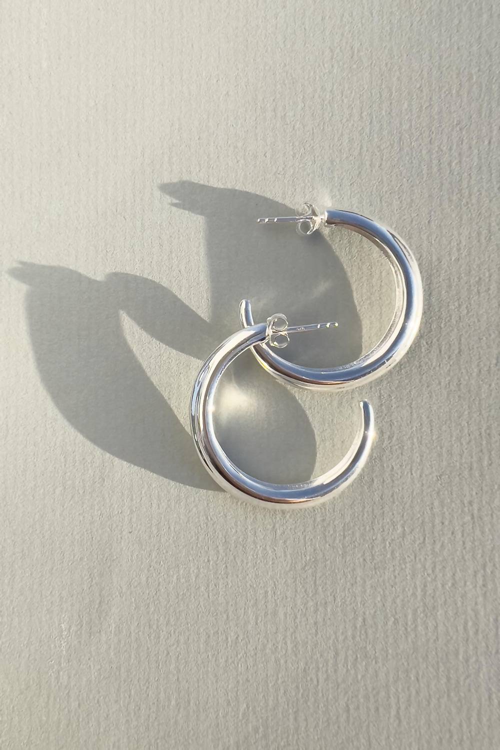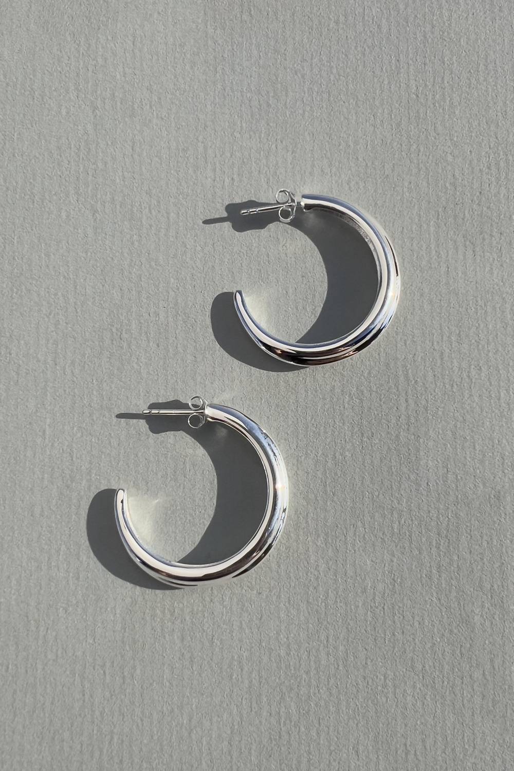 Layer this necklace or wear it on its own. Either way it's a win-win. Experience refined elegance with the Women's Crescent Hoops Earrings Large by Astor & Orion, crafted from sustainably recycled .925 sterling silver. These fine silver hoops measure 1.25 inches in diameter, offering a bold yet lightweight addition to any ensemble. Embrace ethical craftsmanship with these earrings, designed with a post closure for secure and comfortable wear. Transform your look effortlessly with these standout pieces, perfect for mixing and matching with other hoops for a dynamic style statement.