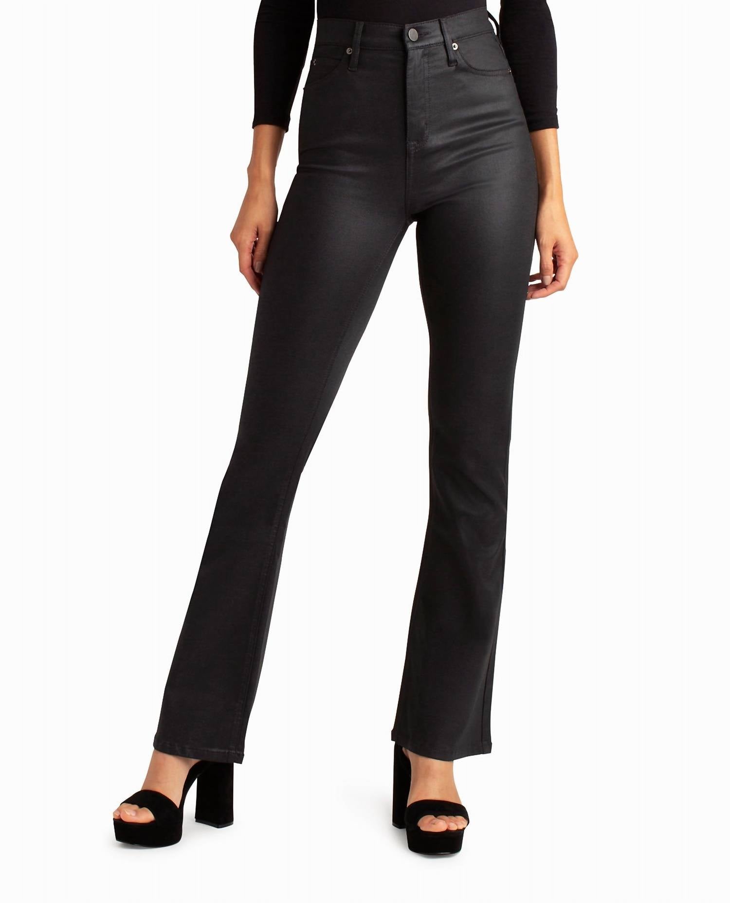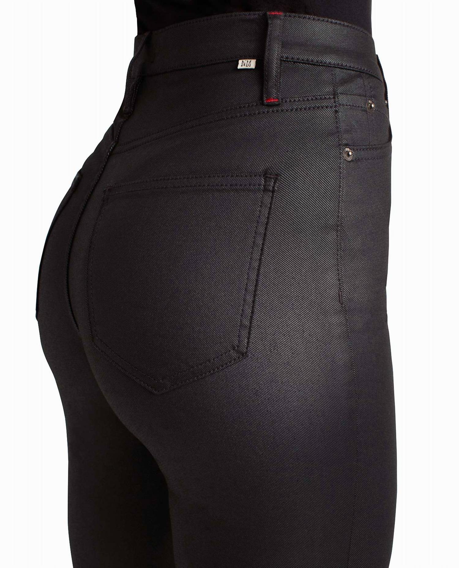 Nicole Miller - Calça jeans flare de cintura alta brilhante