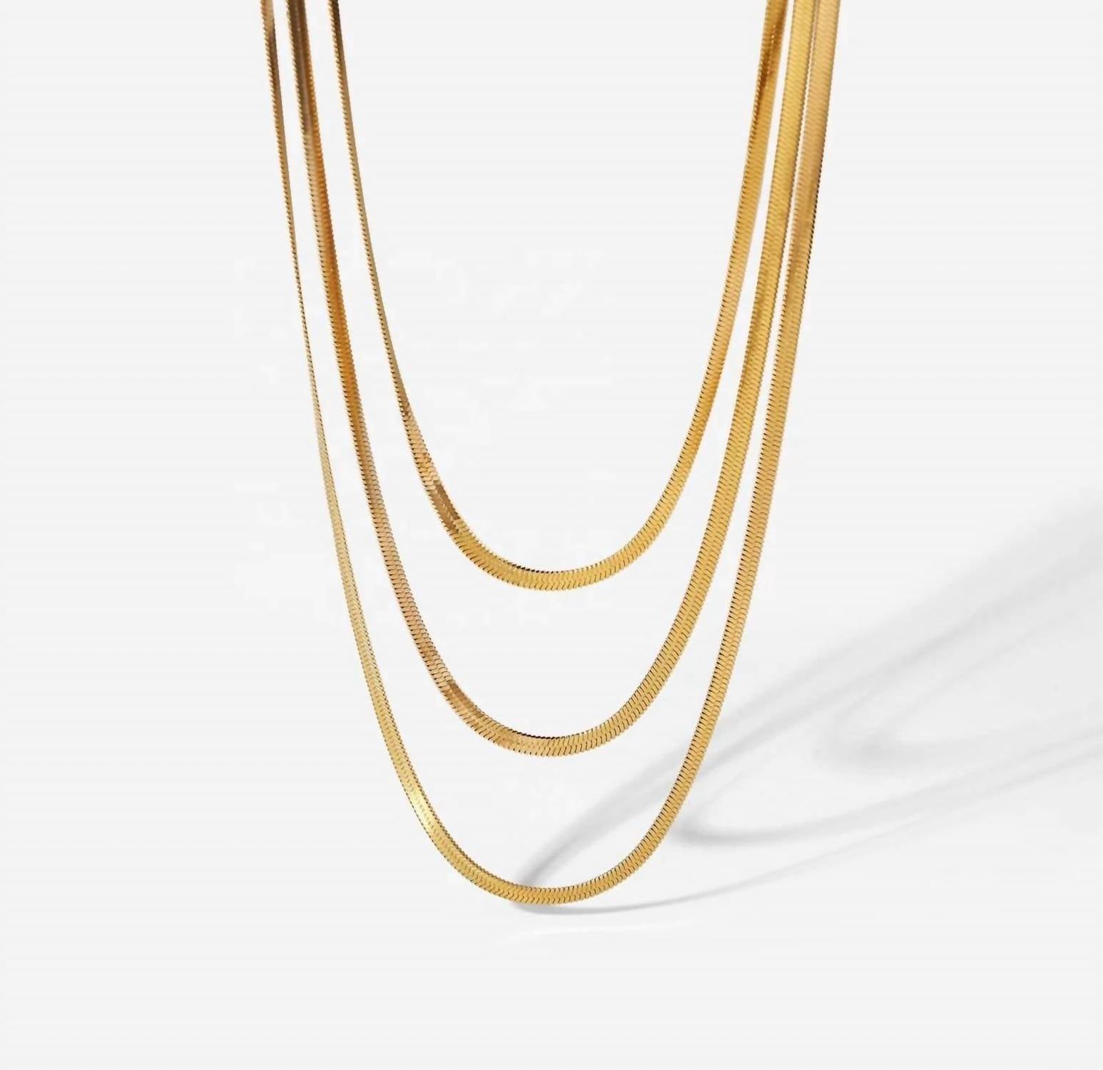 Introducing the Women's Penelope Multi Layered Chain Necklace by SAHIRA, a stunning accessory featuring three layers measuring 16", 18", and 20" in length. Crafted from goldtone material and beautifully 18K gold plated, this necklace is both water and tarnish-resistant, ensuring long-lasting shine.