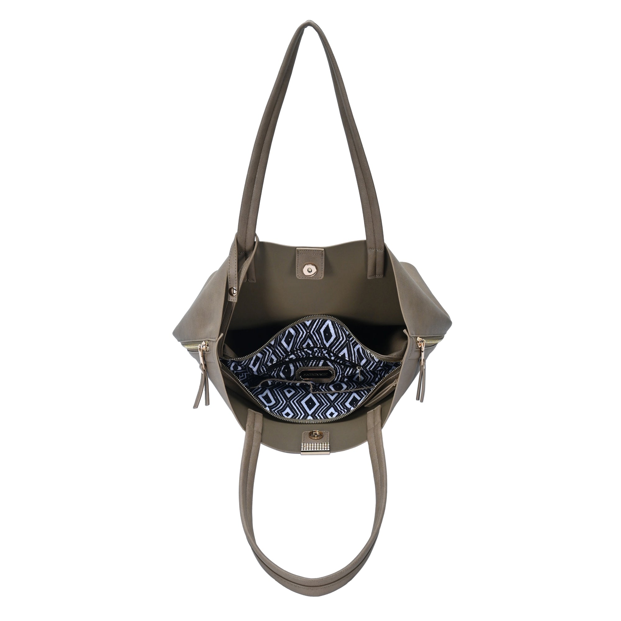 Let your styling do the talking with the Scarlett Tote - a timeless, minimalist tote with subtle light gold hardware details. Crafted with supple vegan leather and a firm flat bottom design, this tote will ensure your belongings stay secure and chic. Open the magnetic snap button to reveal a multifunctional inner pouch - wear it separately for a pop of color or keep it inside for effortless organization.