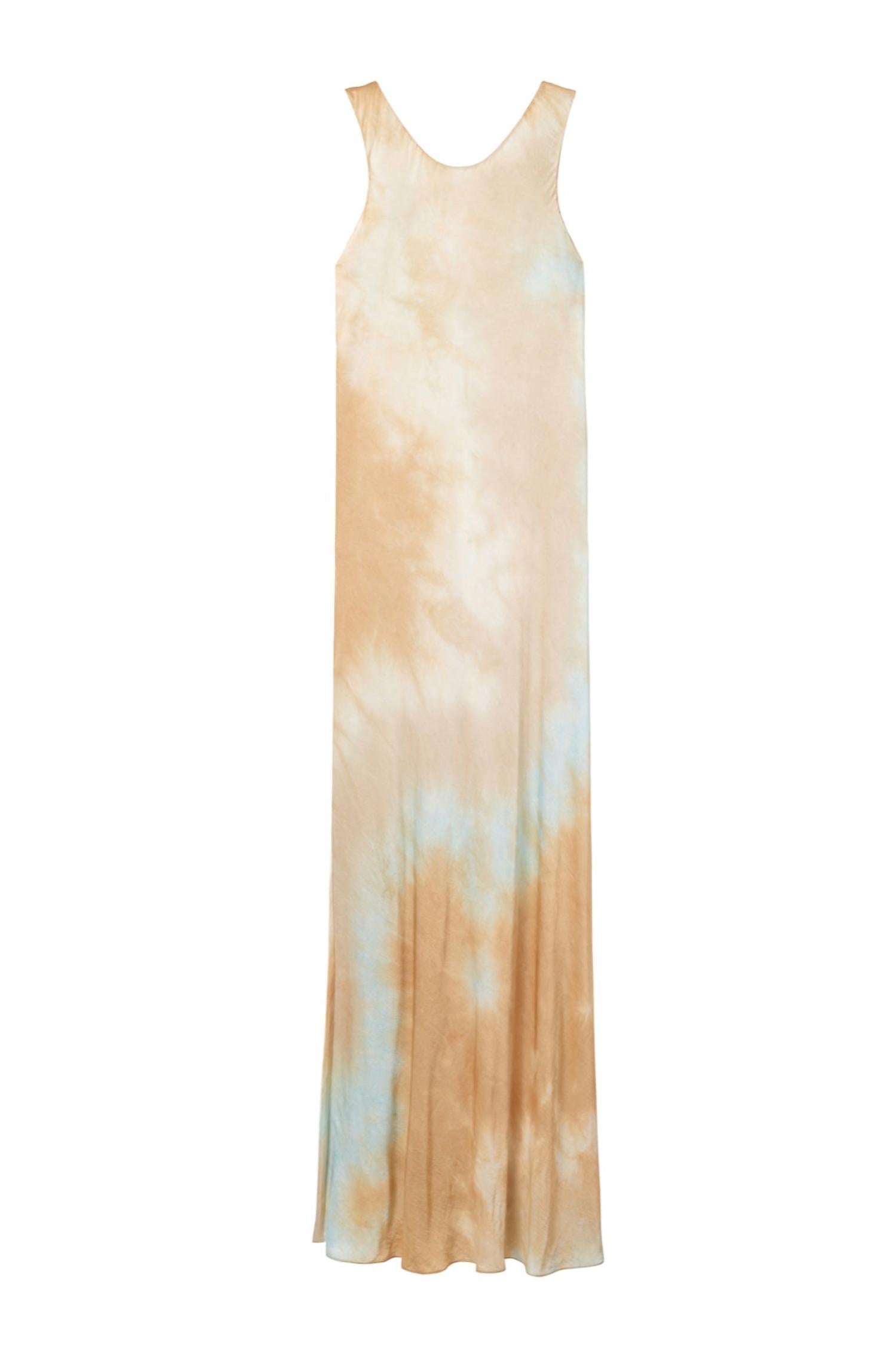 Introducing the A.L.C. Women's Amana Dress, a captivating ensemble for elegant vacation occasions. This maxi dress boasts a sleeveless maxi silhouette in a gradient of sky-blue and sandy-beige with a minimal round neckline and wide straps, gracefully leading to a low, curved back. Crafted from 100% viscose for a smooth feel, it features a convenient pull-on closure. Care for this statement piece by dry cleaning only.
