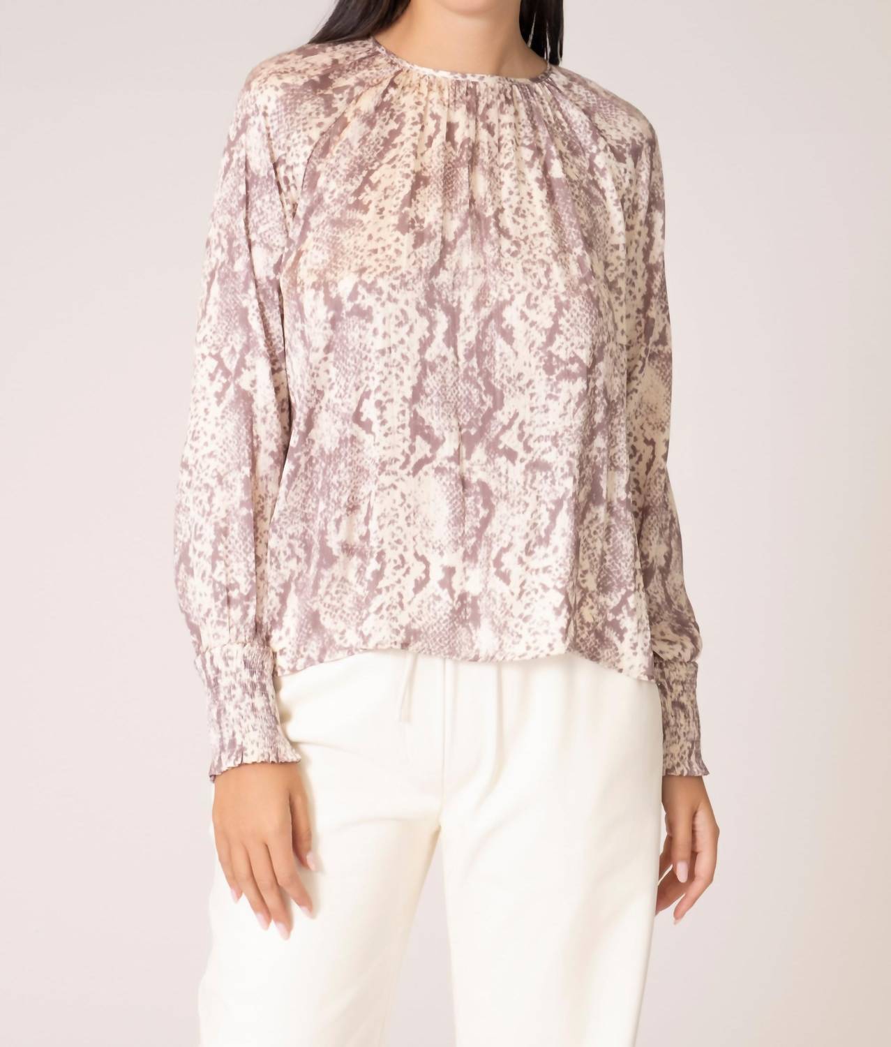 Introducing the Snake Print Long Sleeve Blouse by Area Stars, a standout piece in multi-color featuring a chic animal pattern. With tailored long sleeves and a classic crewneck, this blouse is crafted from 100% polyester, ensuring comfort and style. Closure: Button closure. Care: Dry clean only. Designed for women who embrace a maximalist trend, this blouse is a perfect addition to any spring wardrobe.
