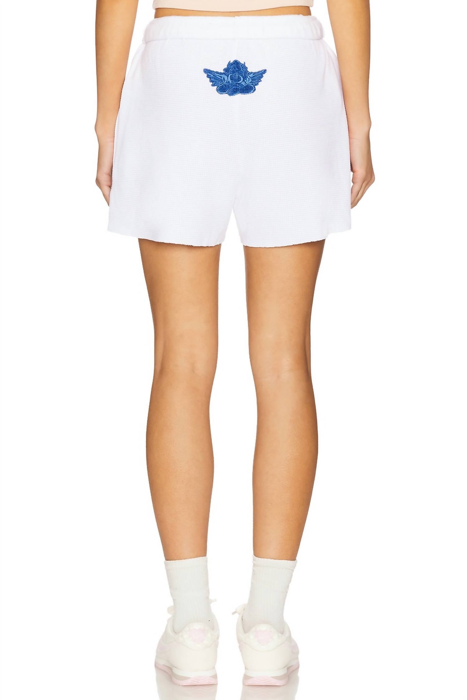 Introducing the Boys Lie Basic Shorts in a crisp white by BOYS LIE, perfect for adding a touch of graphic streetwear to your wardrobe. These high-waisted shorts feature a convenient pull-on closure and practical pockets. Composition: 68% Polyester, 29% Rayon, 3% Spandex. Care instructions include machine washing with like colors and tumble drying low. Ideal for travel during the summer season, these trendy shorts are designed for women who appreciate style and comfort.