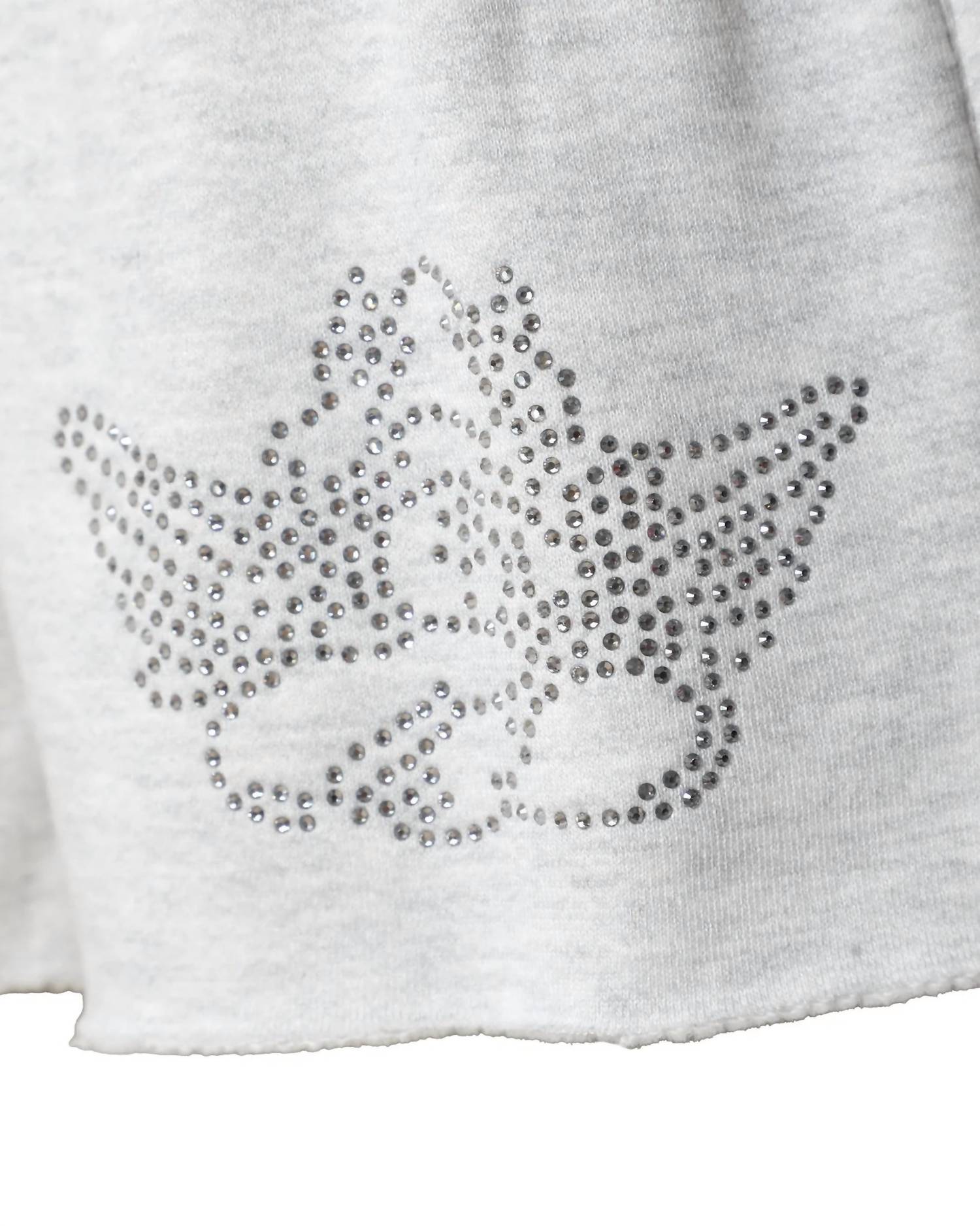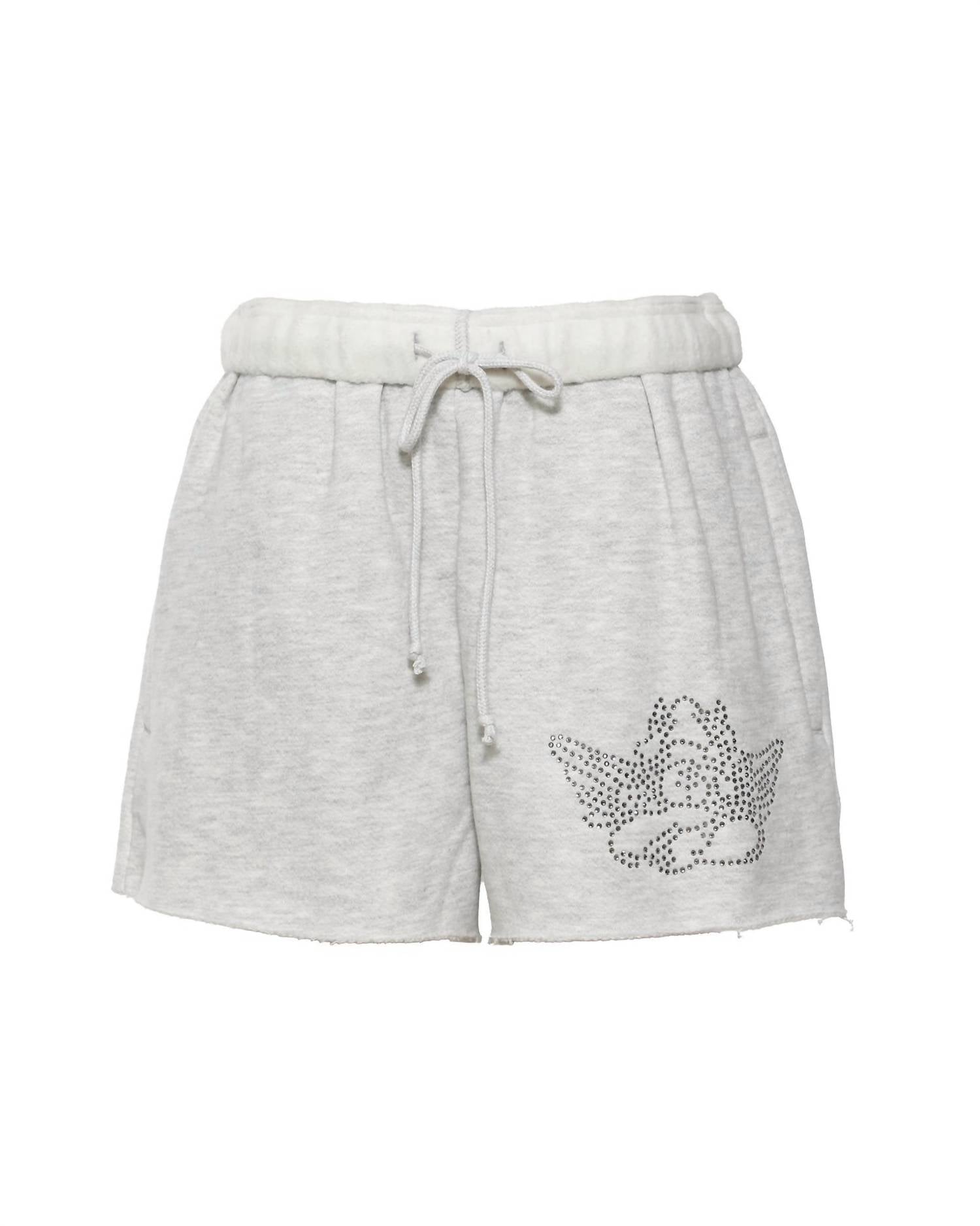 Introducing the Heathered Basic Shorts by BOYS LIE, your go-to for stylish comfort in gray. These high-waisted, sleeveless shorts feature a cotton blend composition of 66% Cotton, 21% Rayon, and 13% Polyester, crafted with subtle graphics for added flair. Closure: Easy pull-on design. Care: Machine wash cold, non-chlorine bleach when needed, wring, tumble dry low, cool iron if needed, do not iron decoration. Model Leah is wearing a size small. Perfect for travel or relaxed summer days.