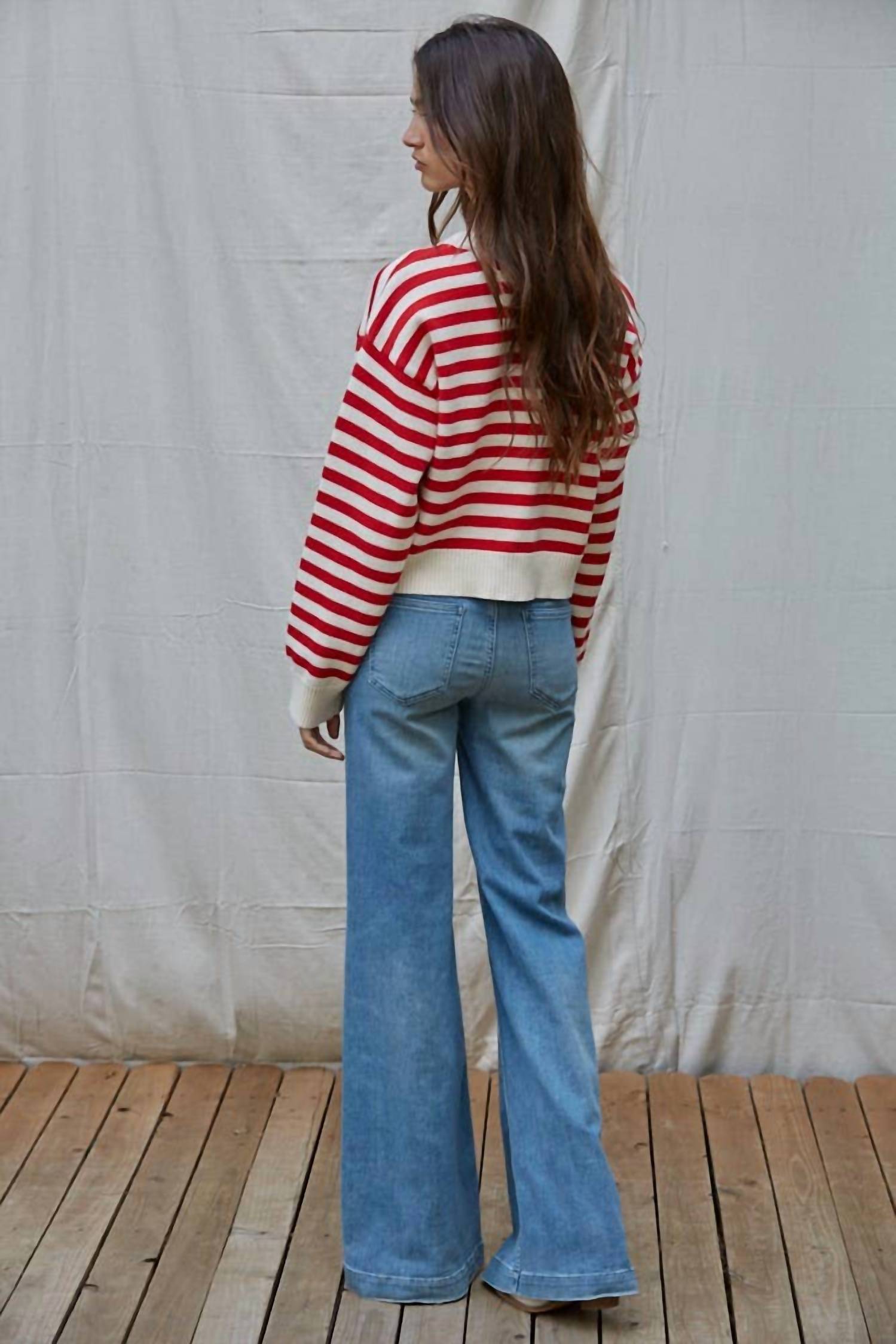 Elevate your wardrobe this fall with the By Together Knit Striped Sweater, featuring a chic cream and red color palette. This women's long sleeve pullover is crafted from 50% Nylon, 32% Wool, 18% Acrylic, offering both comfort and durability. Designed with a classic crewneck and a pull-on closure for effortless style and ease. Keep it looking fresh by adhering to the care instructions: hand wash only.
