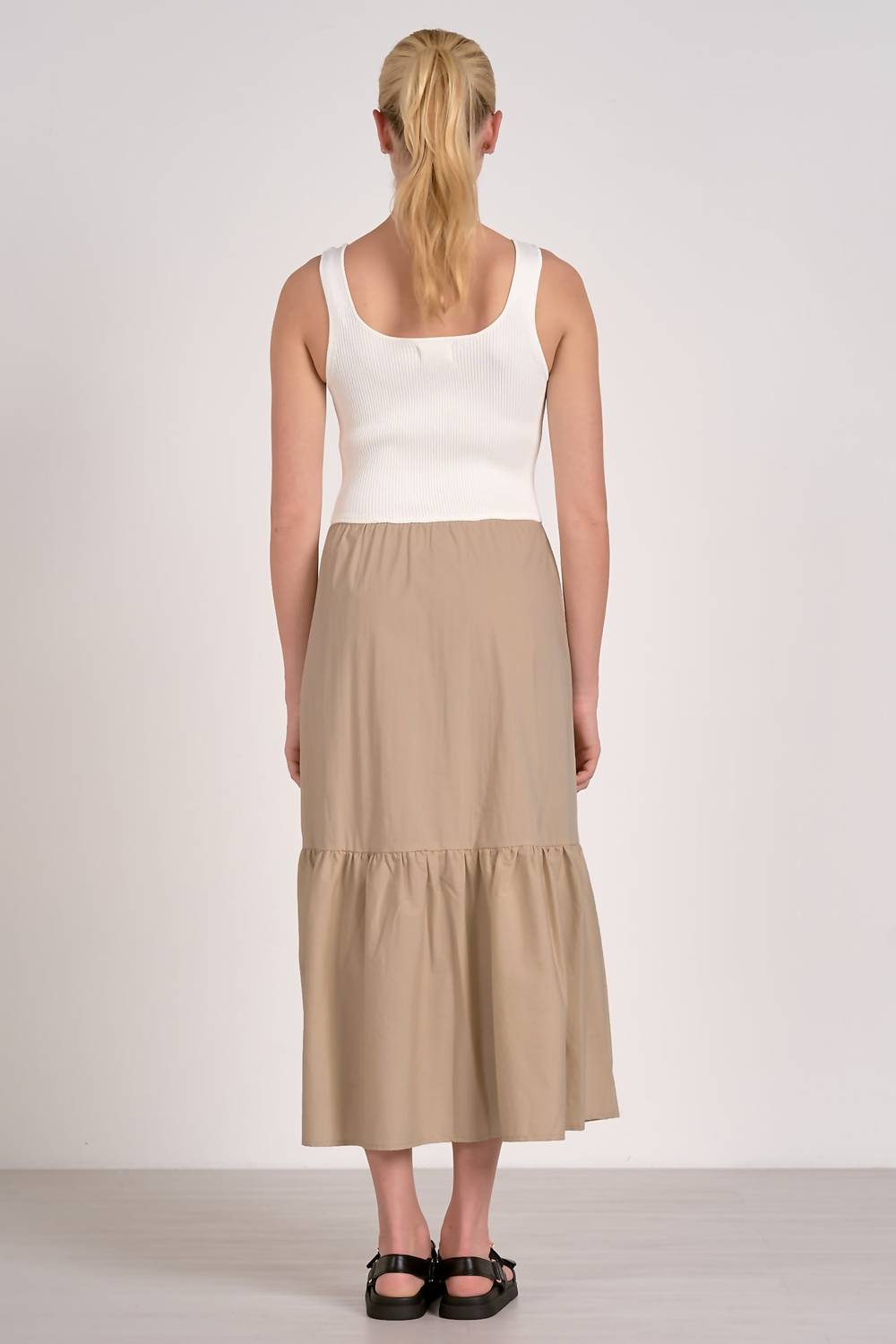 Discover the Maxi Tank Mixed Media Dress by ELAN, a stylish choice for a minimalist summer wardrobe. This sleeveless, solid-pattern maxi dress in Sand White effortlessly combines comfort and style with its A-line silhouette and scoop neckline. Closure: Pull-On. Care: Machine wash. Ideal for vacation and Thanksgiving gatherings, its practical design includes convenient pockets.