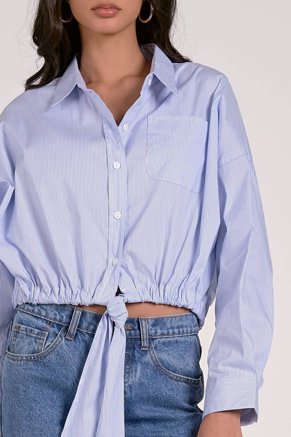 Elevate your wardrobe with the Sailor Long Sleeve Top by ELAN, a timeless piece featuring long sleeves and a classic collar for effortless sophistication. Crafted from a cotton blend of 72% cotton, 25% polyamide, and 3% elastane, this top offers both comfort and style in a chic blue stripe pattern. The button front closure with a flattering tie bottom detail adds a touch of elegance to any vacation or Thanksgiving look. Care instructions: Machine wash and tumble dry for easy maintenance.