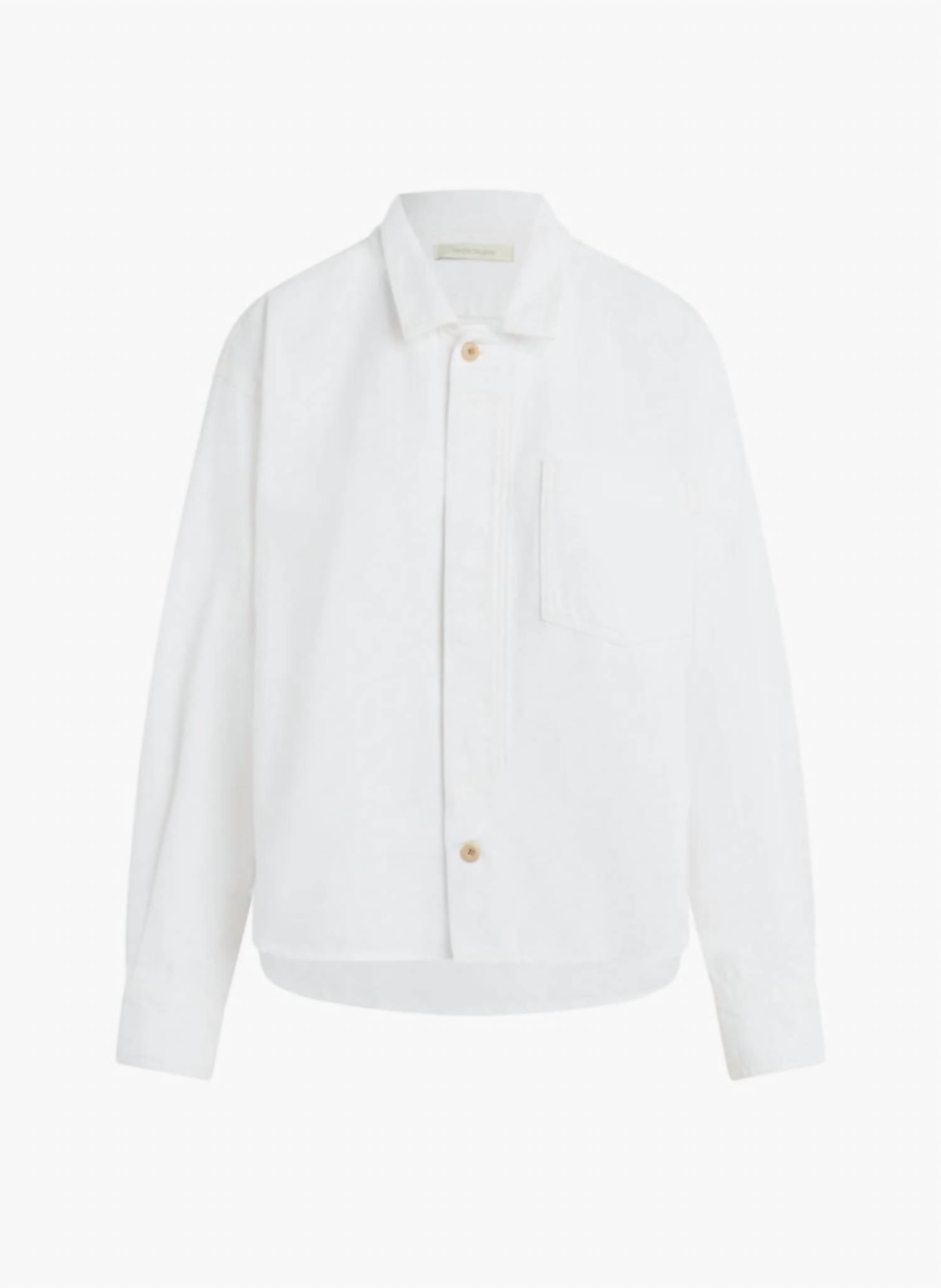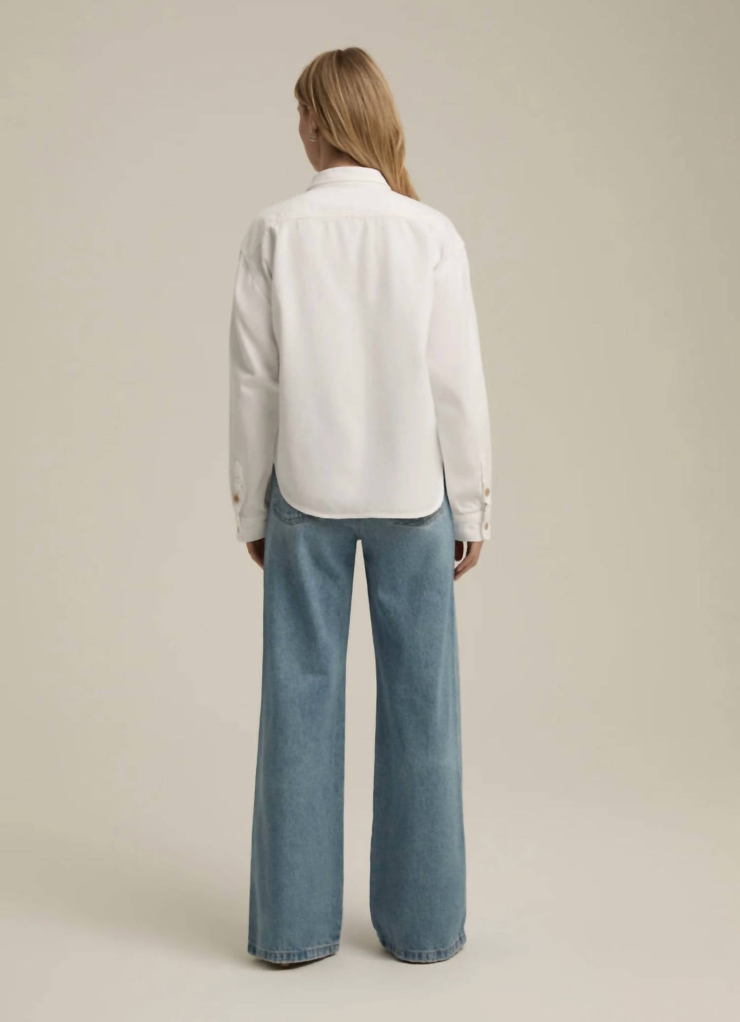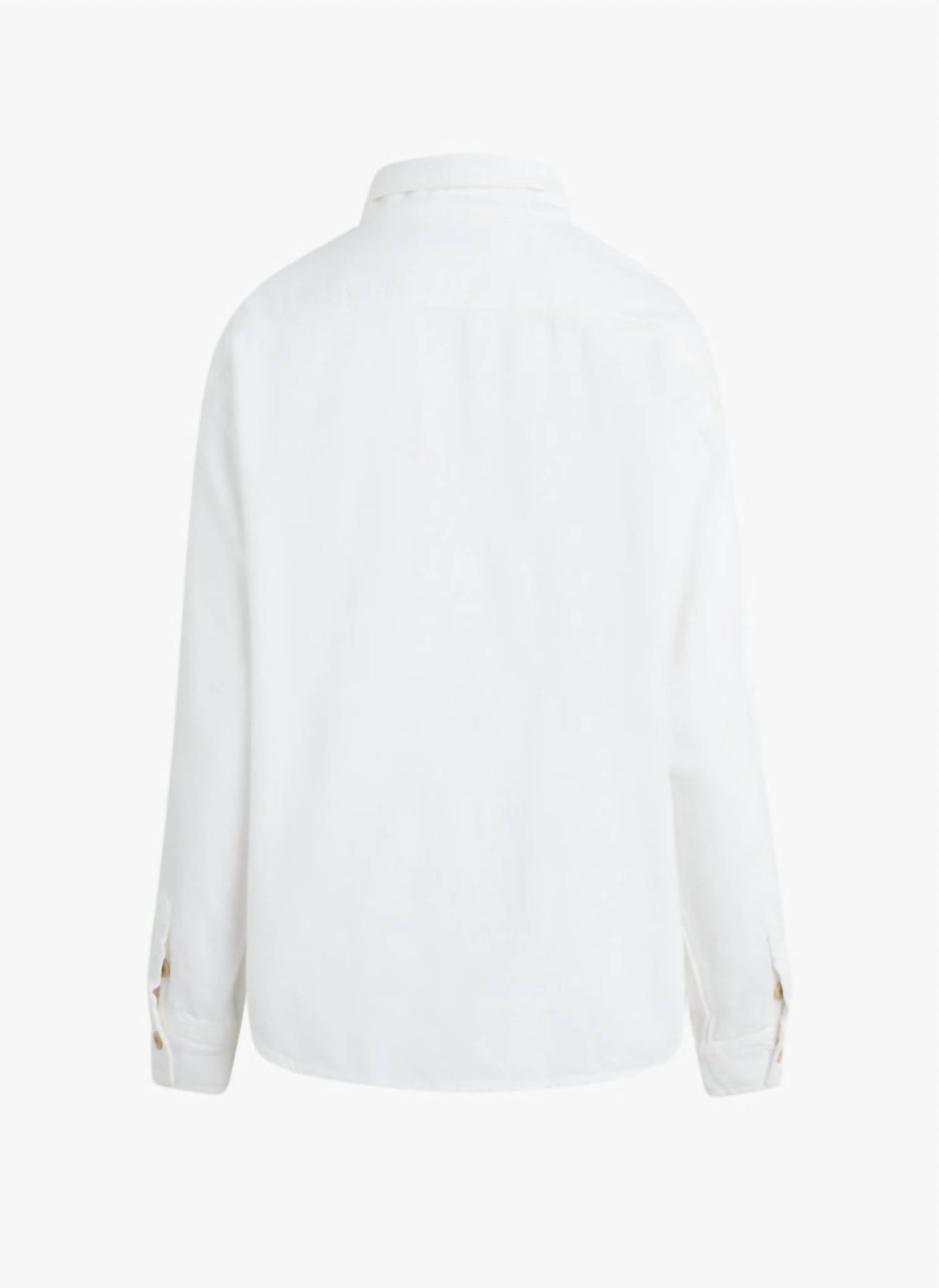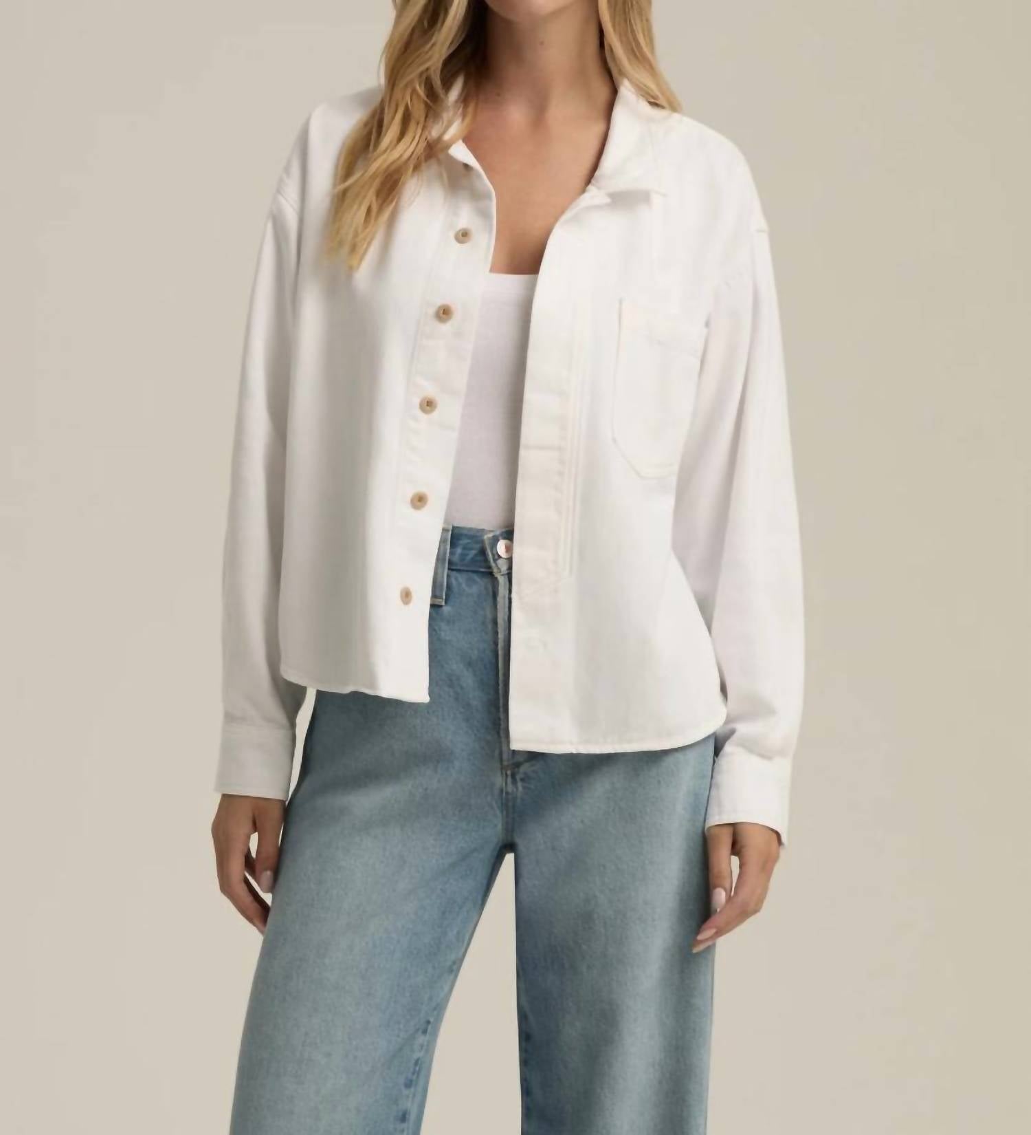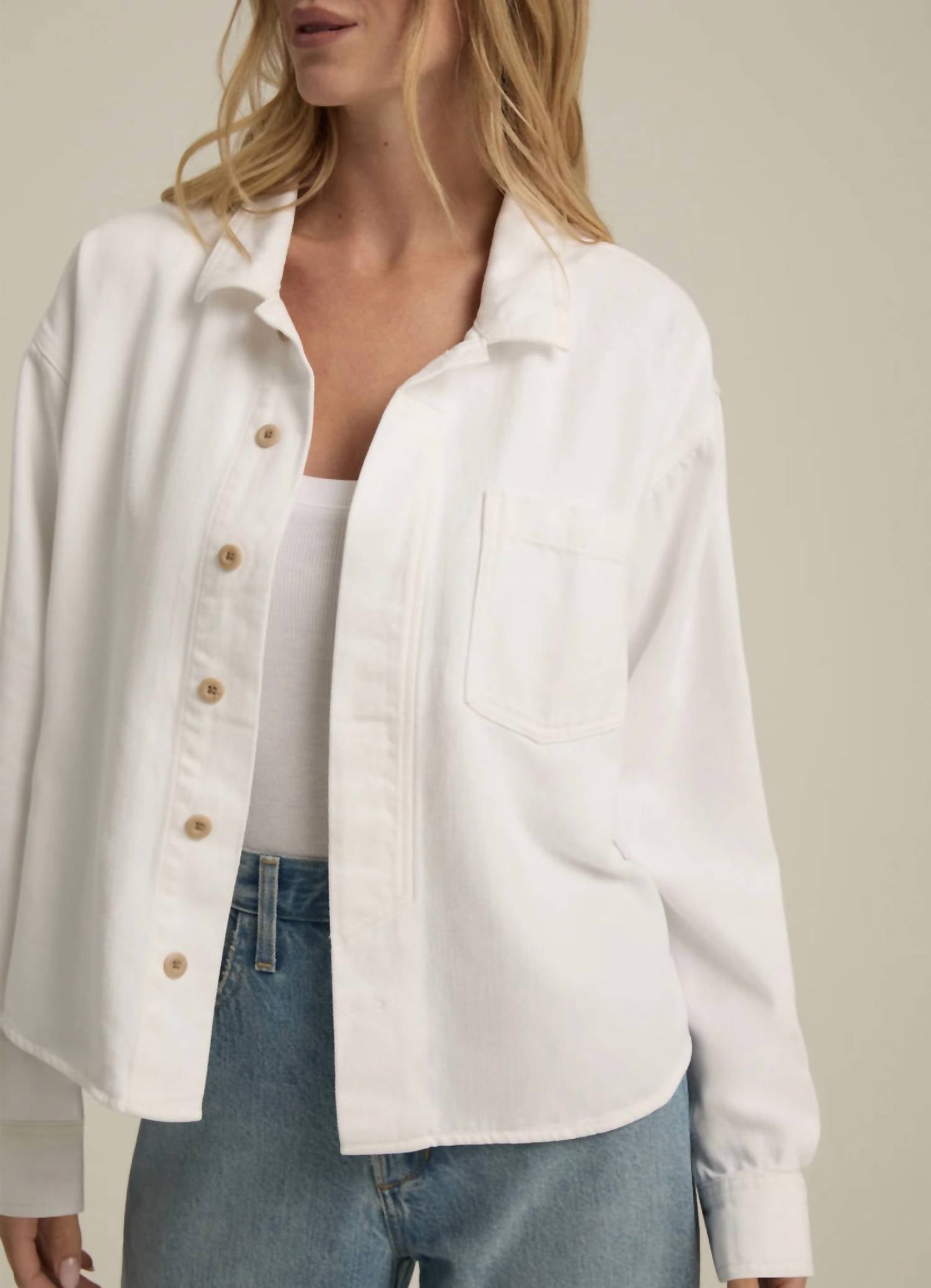 A long sleeve top you can wear with denim, skirts, well... just about anything! The Thinking About It Shirt by Favorite Daughter offers timeless style with a versatile design. Made in a Knox hue, this long sleeve shirt features a relaxed fit, a front pocket, and a high-low hem. Constructed from a soft cotton blend with 57% Cotton and 43% Lyocell, it boasts a solid pattern and a classic collar.