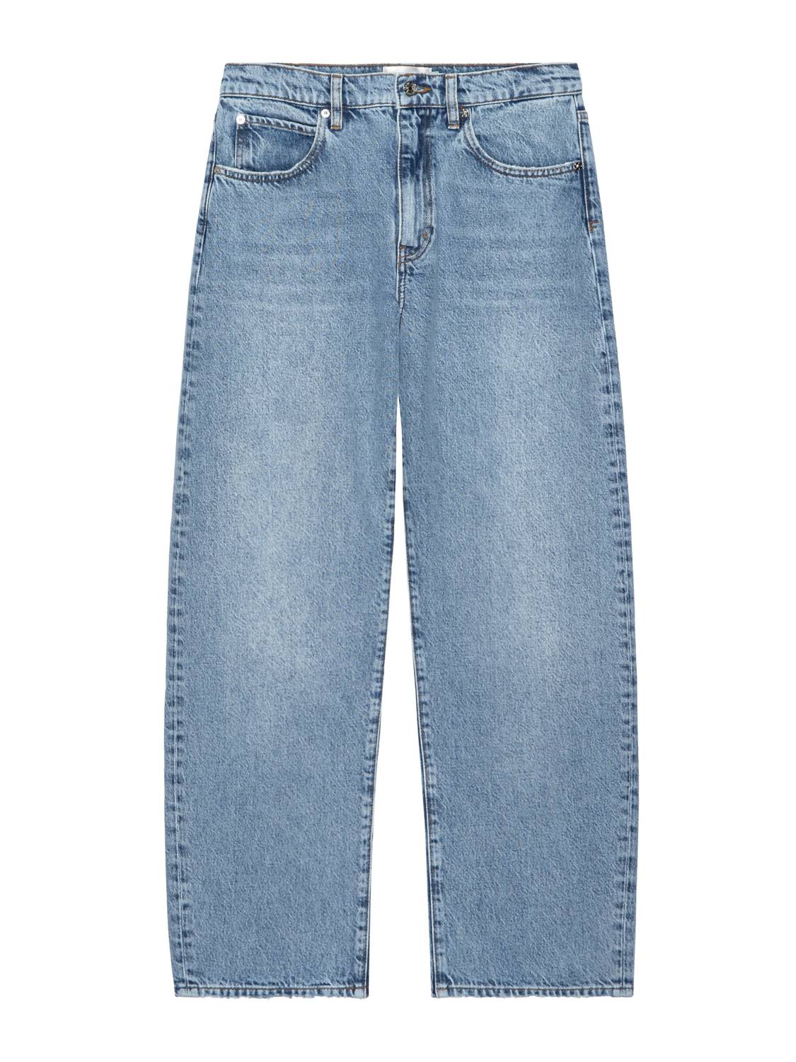 The Low Slung Barrel Jeans by FRAME redefine vacation streetwear with a modern silhouette and a relaxed fit. Crafted from 100% Regenerative Cotton, this denim in the Dollhouse color supports both sustainability and stylish sensibility. The jeans feature a gently tapered straight leg, textured pattern, and convenient zip closure. Perfect for spring adventures, these jeans ensure you remain at the forefront of eco-conscious fashion.