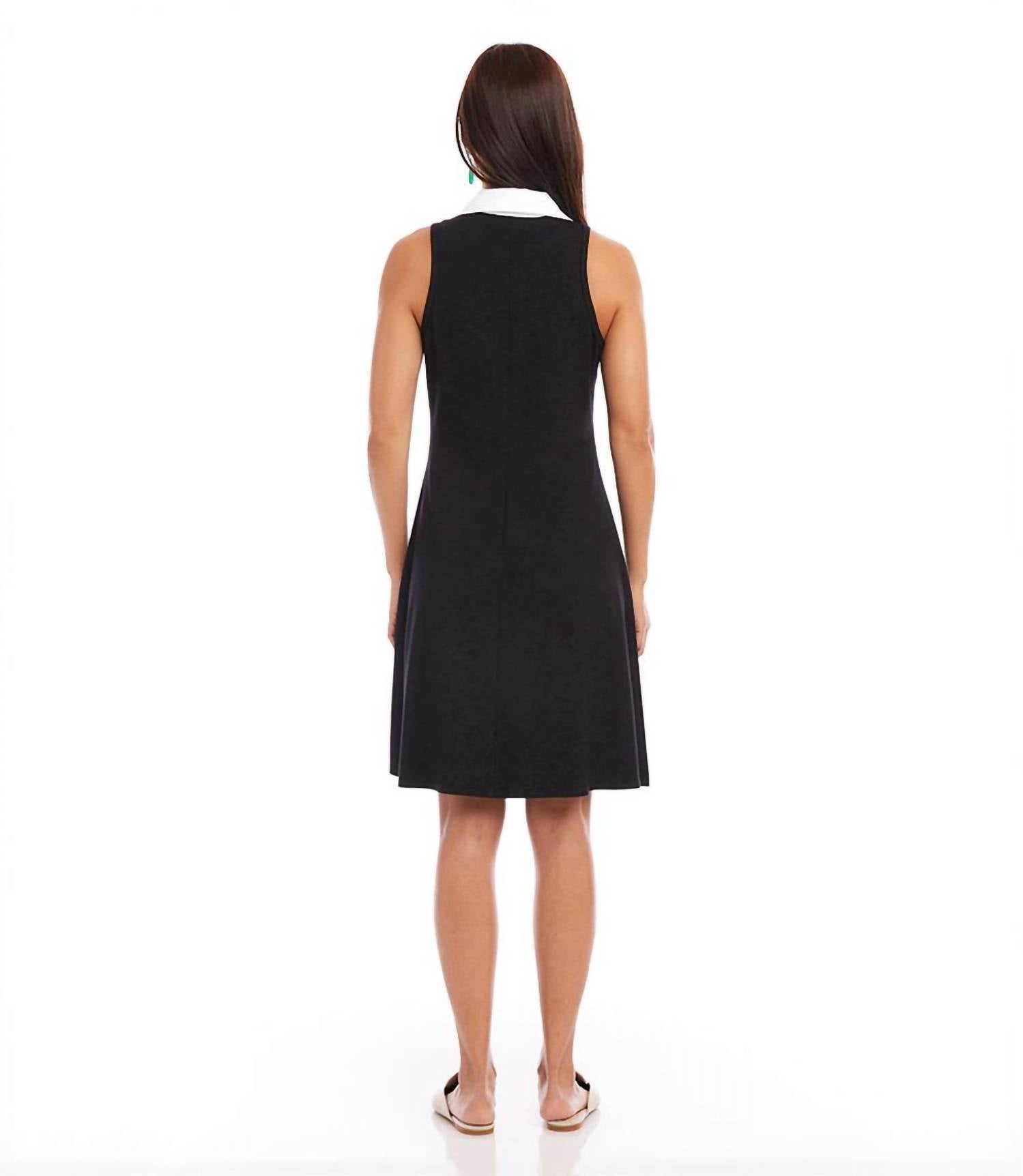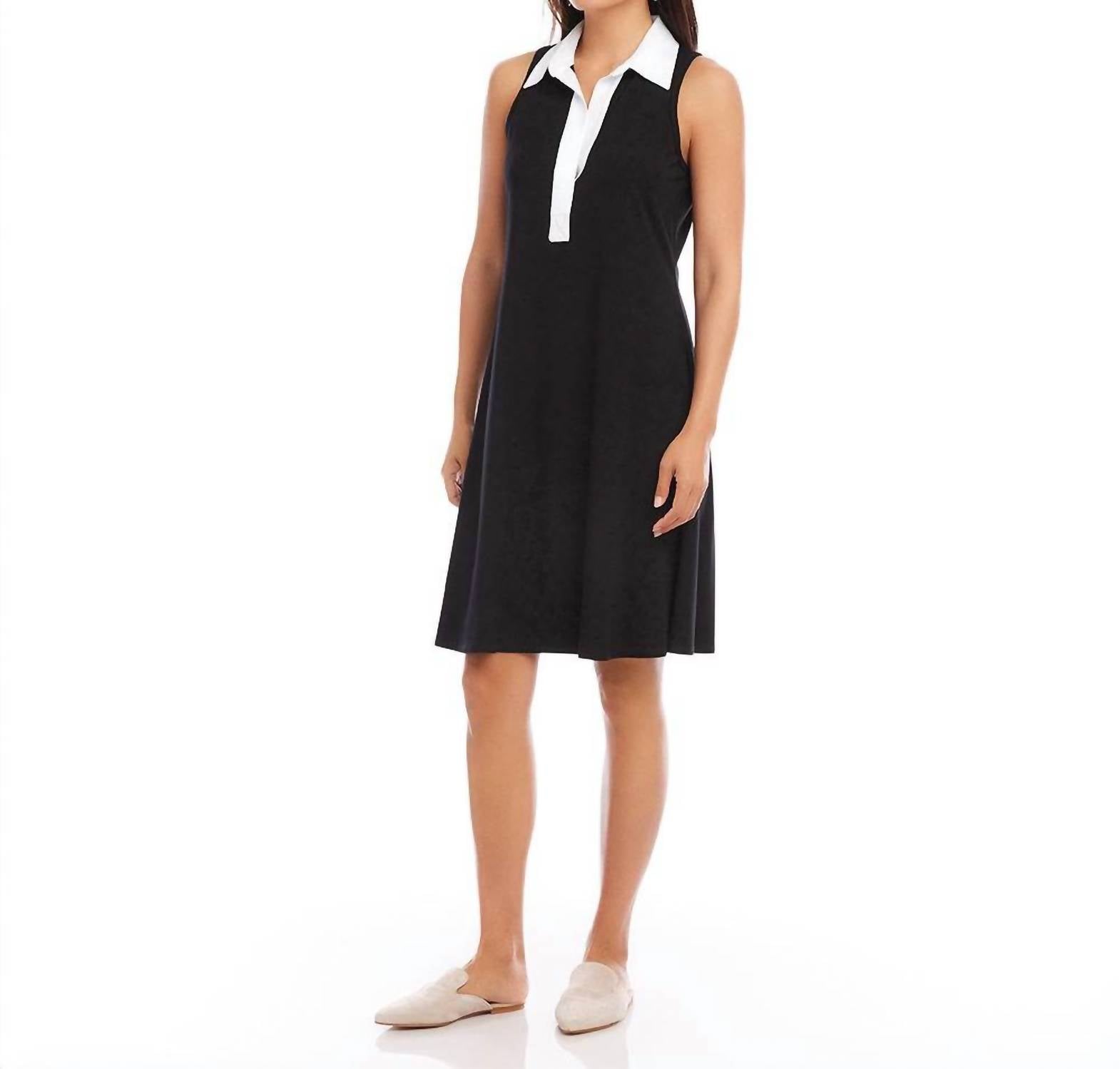 Discover the Contrast Placket Dress by Karen Kane, an elegant piece for any spring dinner party or Thanksgiving gathering. This sleeveless dress features a button closure with a crisp contrast placket and a classic collared neckline, made from heavy rayon spandex jersey for a flattering fit-and-flare silhouette. Its A-line shape creates a chic look that gently falls to a mini length, 38 1/8 inches in size M. Composition: 90% Rayon, 10% Spandex. Made in the USA. Care: Machine wash separately in cold water on a delicate cycle, no bleach, and line dry.
