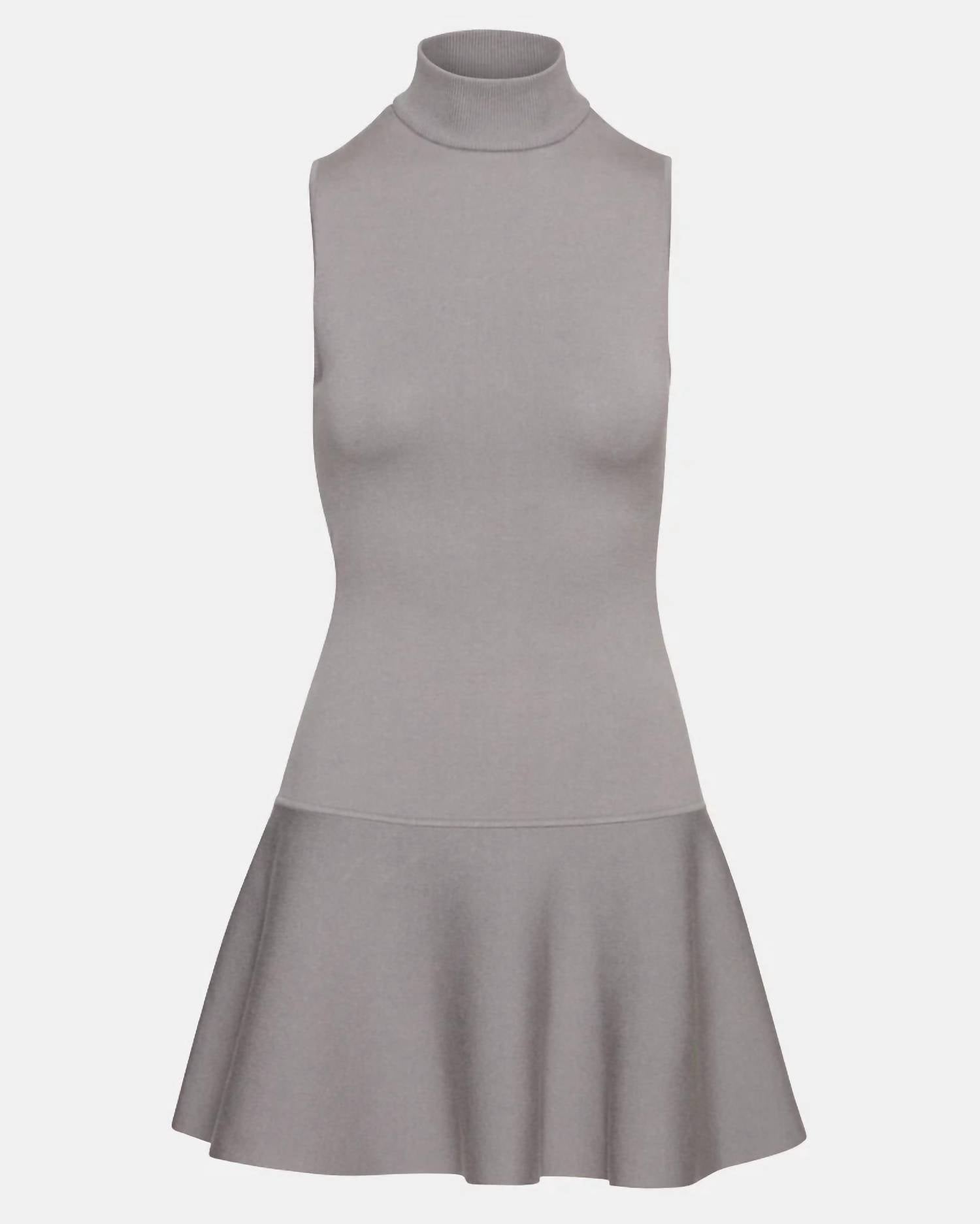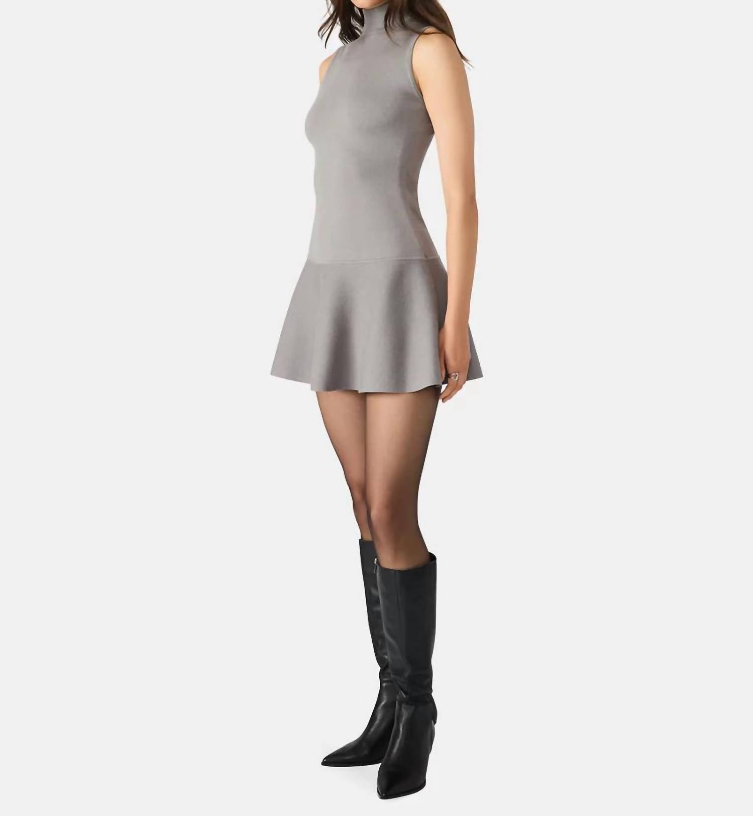 Introducing the Breslin Sweater Dress by Steve Madden, a chic choice in Grey Heather perfect for a holiday party. This sleeveless mini dress, crafted from a solid cotton blend, offers a cozy yet breathable knit texture for flexible comfort. It features a fit and flare silhouette with a stylish mockneck, ideal for a minimalist trendsetter. Effortlessly adaptable for both casual and dressy occasions, this garment is made to maintain its softness and shape over time.