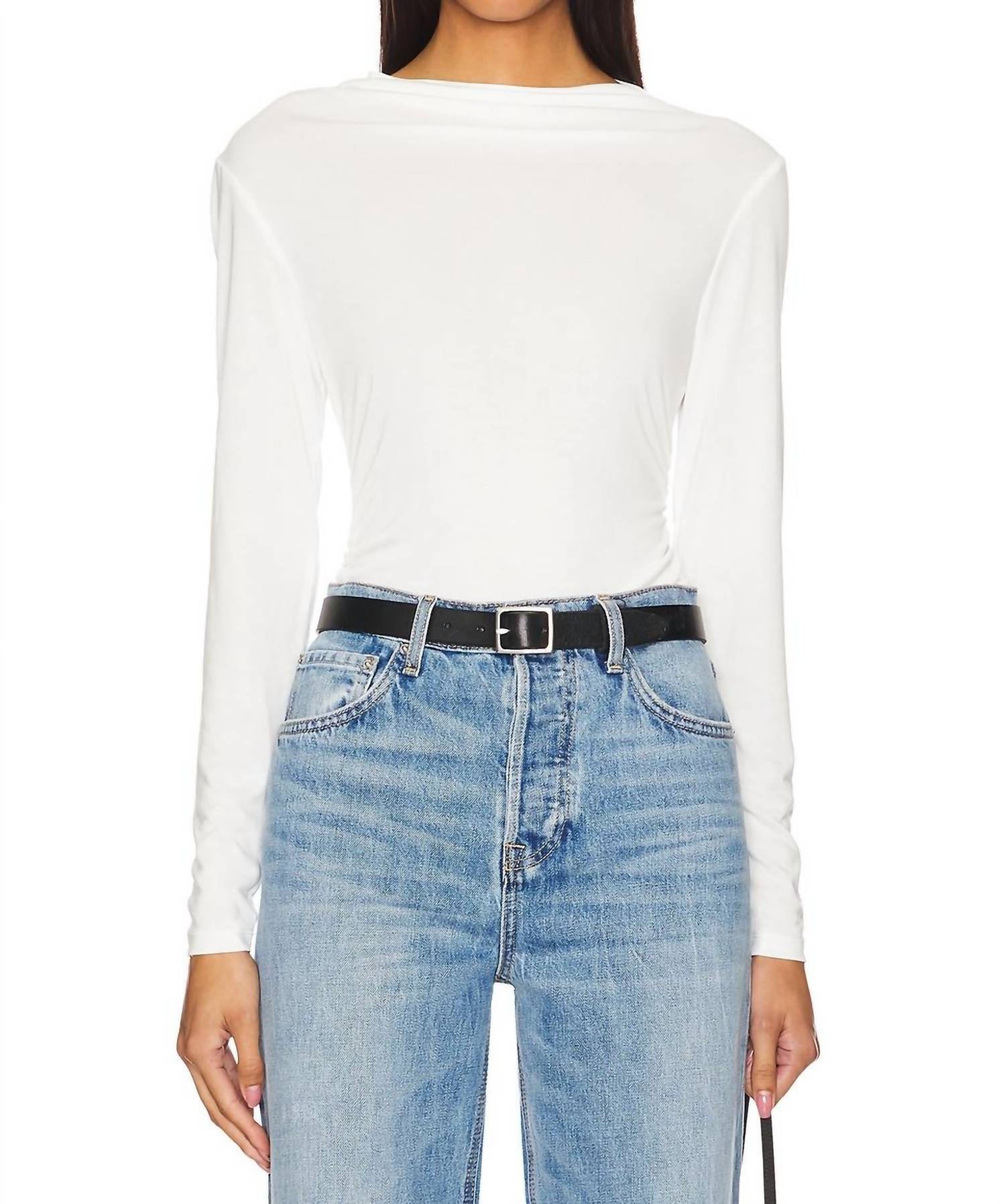 Discover effortless elegance with the STEVE MADDEN Women's Elvira Long Sleeve Top in Whisper White. This solid long sleeve essential features a chic draped neckline and ruched sides for a flattering silhouette. Crafted from a soft blend of 95% Polyester and 5% Spandex, it ensures a comfortable, breathable fit. Designed for versatile style, this slim-fitting top has a convenient pull-on closure and can be seamlessly integrated into both casual and evening wardrobes. Care: Machine wash cold with like colors, and lay flat to dry.