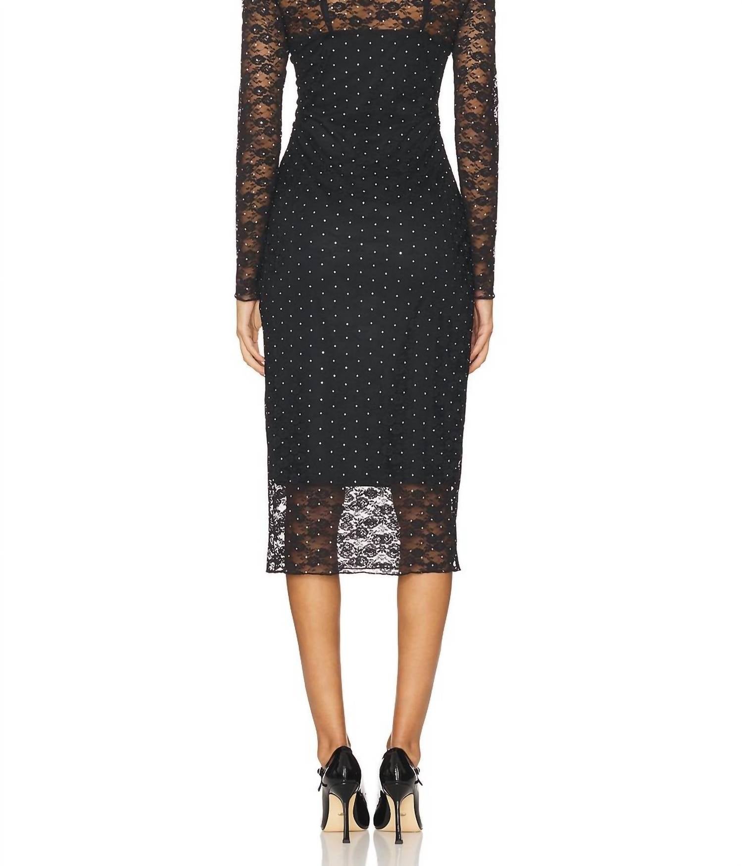 Just add slides or mules and you are good to go. Step into elegance with the Vivienne Studded Lace Dress by Steve Madden in classic black. This stunning long sleeve bodycon dress features a mockneck and sheer lace mesh fabric overlaying a modesty slip with adjustable straps, all designed in a pullover style. Composition: 90% Nylon, 10% Spandex. Care: Hand wash. Ideal for an evening event, this piece combines sophistication with modern flair.