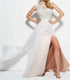 Presenting the Beaded Open Back Prom Dress with Overskirt by MAC DUGGAL, a stunning choice for any formal occasion. This sleeveless fit and flare silhouette features a high crewneck and open back design, adorned with an exquisite beaded bodice in a captivating ivory and gold pattern. The dress boasts a dramatic side slit and an elegant overskirt that enhances its sophisticated allure. Closure: Zip closure.