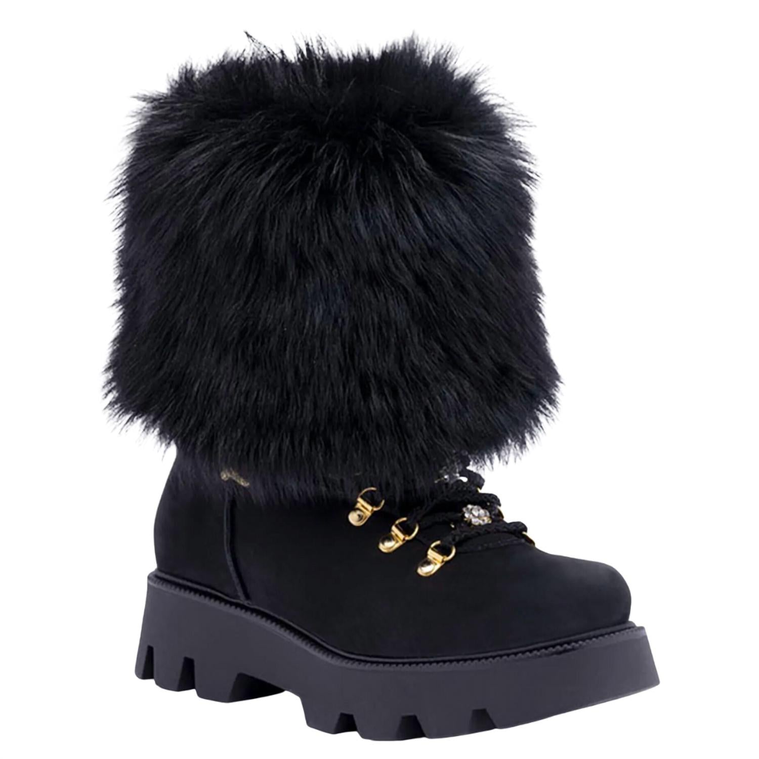 Dia chuvoso? Sem problemas! As galochas mais fofas e confortáveis ​​da estação. Montelliana Botas Seicento Couro de cabra e pele de carneiro em preto Botas de caminhada de camurça com forro de pele de carneiro Cadarço Estilo Pull-on Sola de borracha com travas Biqueira redonda Salto bloco de 1,7" Altura do eixo 14,2" Feito na Itália