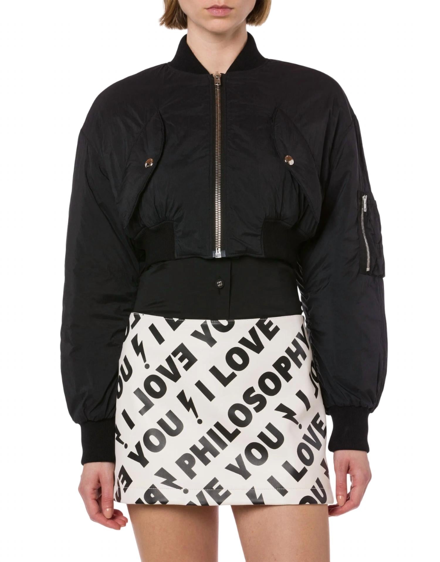 Nada é mais descolado do que esta jaqueta bomber com inspiração vintage. 100% poliéster, 100% poliamida. Jaqueta bomber curta acolchoada em nylon com bolsos frontais e bolso pequeno na manga. Fabricada na Itália.