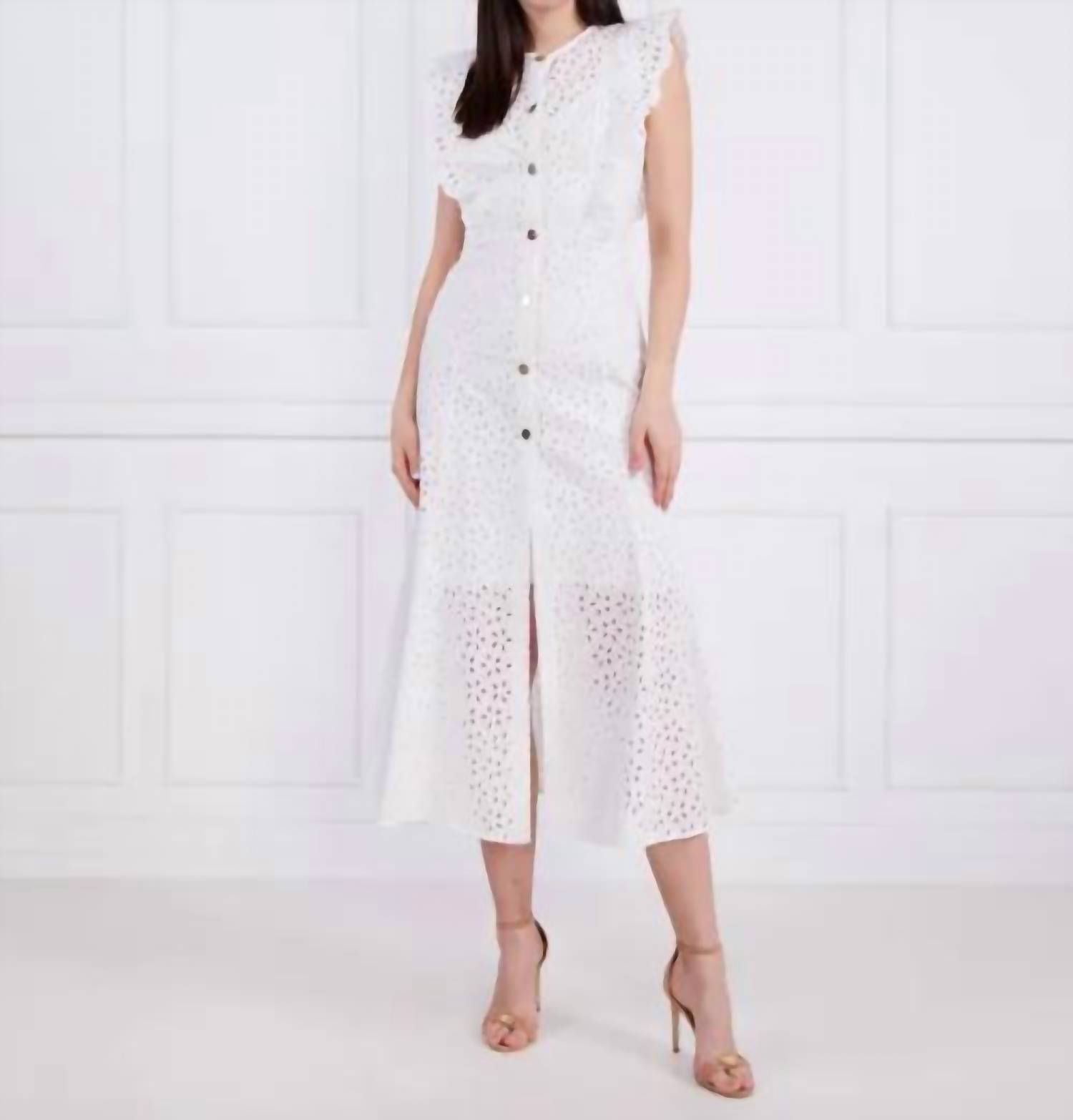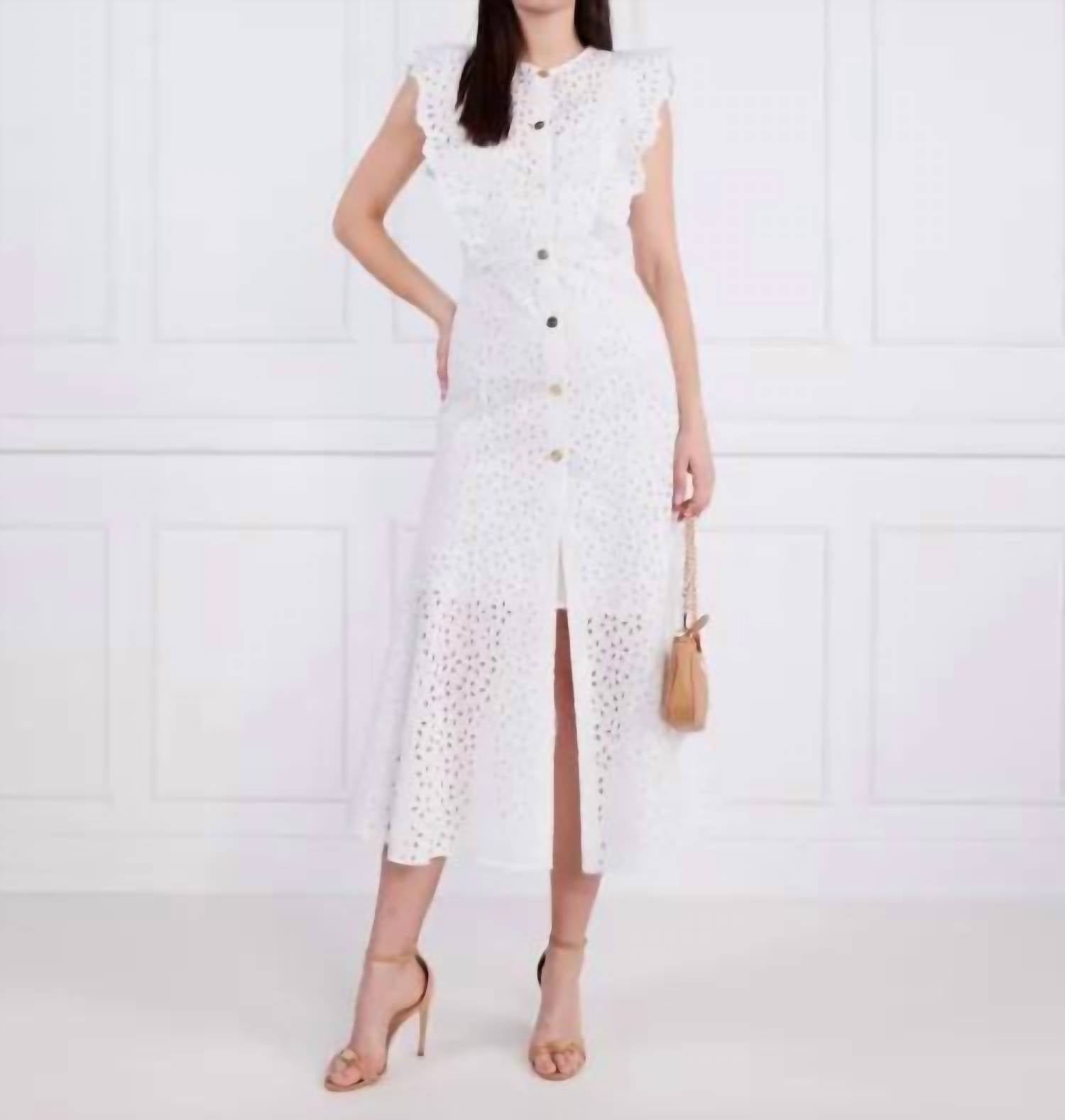 Basta adicionar slides ou mules e pronto. Apresentamos o Admirável Vestido Bordado de Algodão da PINKO, uma escolha requintada para o seu guarda-roupa em branco impecável. Este vestido midi possui mangas curtas e é confeccionado com uma deliciosa composição de material externo 100% algodão, totalmente forrado com 100% viscose. O vestido garante elegância e conforto, fechando perfeitamente com botões para um ajuste fácil. Desfrute de uma manutenção sem complicações com seu tecido lavável à máquina, tornando-o perfeito para uma variedade de ocasiões.