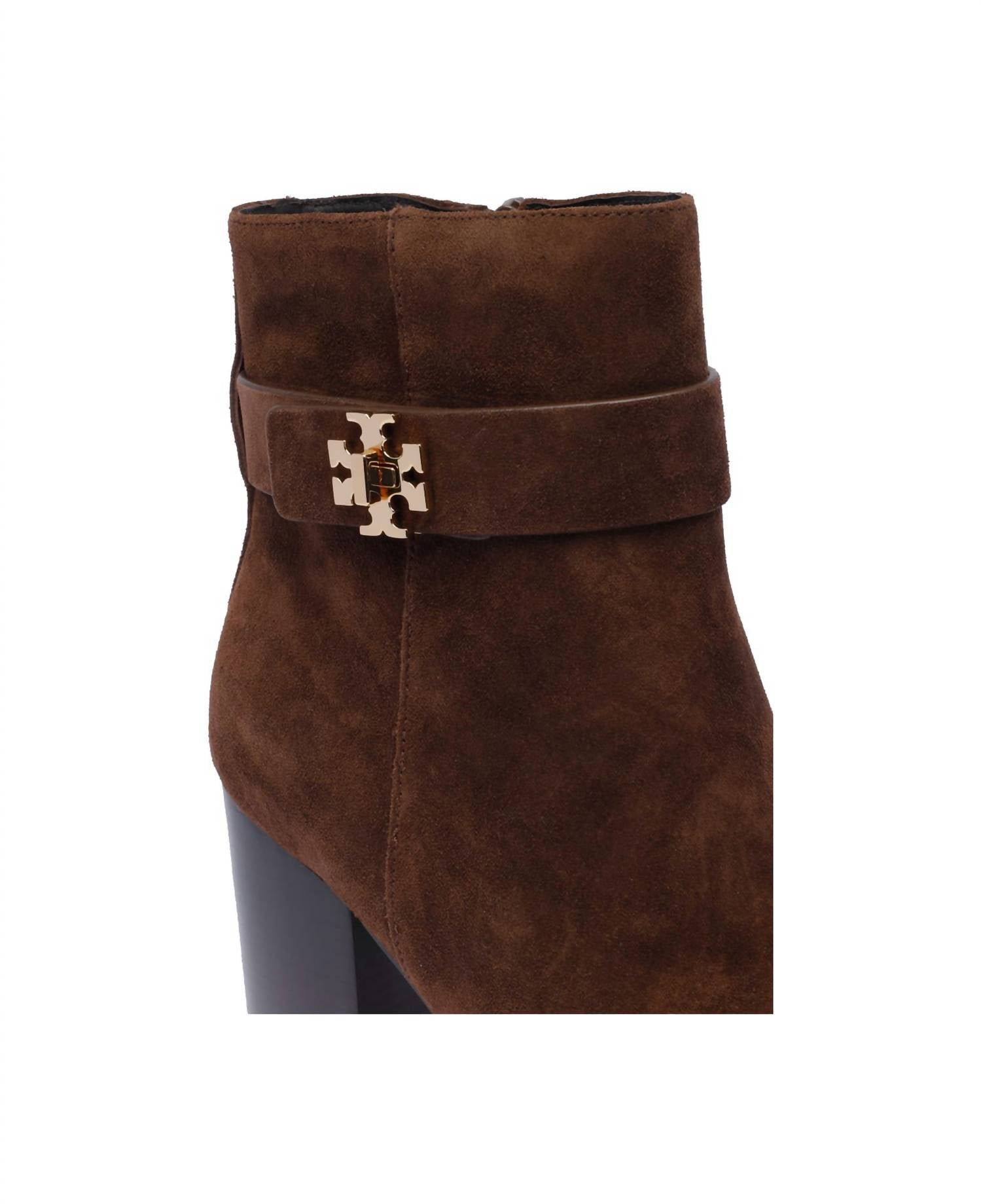 Diga olá à bota perfeita e mais versátil. A altura do tornozelo facilita a transição do dia para a noite. Use-a com sua calça jeans skinny favorita e camiseta para um look mais descontraído, ou combine-a com seu minivestido e jaqueta favoritos para uma saída à noite. Estas botas de cano alto Tory Burch T Lock marrons apresentam um design sofisticado de bico redondo, com um cabedal luxuoso em camurça e um elegante detalhe dourado na lateral. Contam com um prático fecho de zíper lateral para facilitar o calce. Confeccionadas em couro 100% de bezerro e solado em couro, estas botas importadas estão disponíveis em uma cor marrom vibrante. O salto mede aproximadamente 8,5 cm e o número do modelo é 156277200, garantindo um ajuste elegante e elegante.