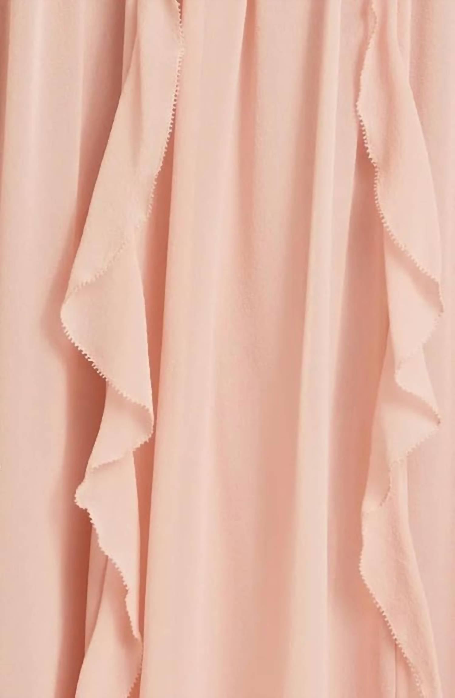 Combine este maxi com seu colar e sandálias favoritos para um look perfeito. Eleve o seu look para eventos noturnos com o Vestido Longo Halterneck Lucine Ruched em Seda e Crepon da Veronica Beard. Este vestido em tom blush apresenta alças finas e decote halter, lindamente confeccionado em uma luxuosa mistura de 52% seda, 40% viscose e 8% elastano. Com um corte sofisticado, possui fecho de zíper e mede aproximadamente 43 cm de largura no peito, servindo no tamanho 36. As instruções de cuidado recomendam lavagem a seco para manter seu charme elegante.