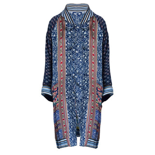 Johnny Was - CASACO QUIMONO REVERSÍVEL LONGO DE SEDA FIORI EM SARJA