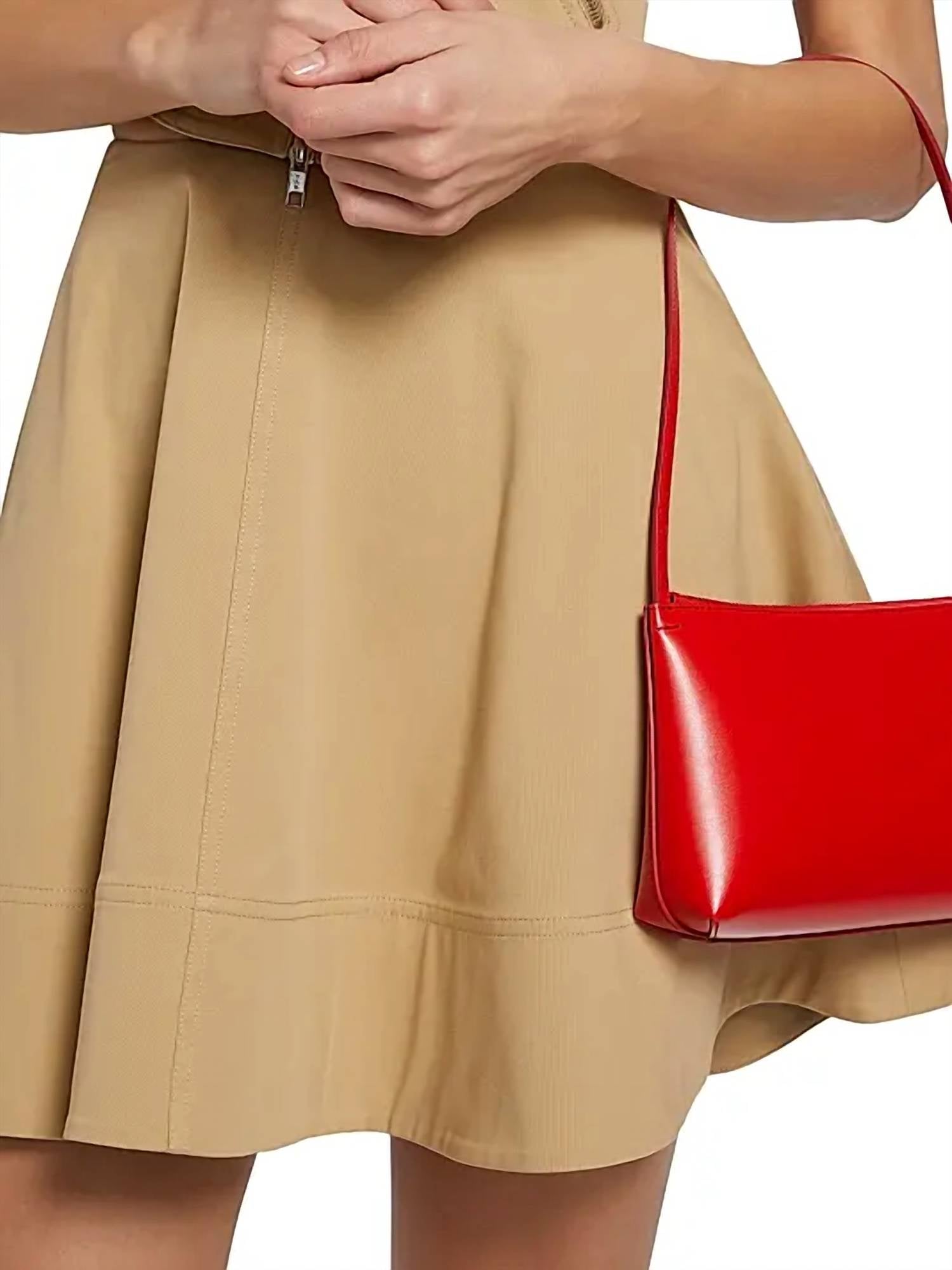 Step into summer style with the Ella Stretch Cotton Mini Skirt by A.L.C., a minimalist piece in elegant Desert Beige. This A-line silhouette is crafted from a breathable cotton blend, offering both comfort and chic appeal. The design features a buttoned front panel and a sleek side zipper closure. For best care, please dry clean this solid pattern skirt. Perfect for women seeking a modern look for holiday parties and beyond.