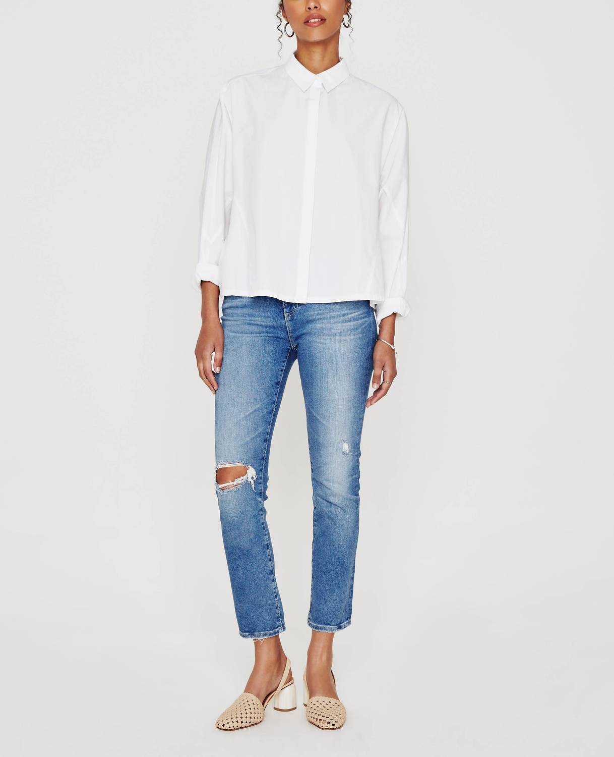 The perfect cropped jean for those transitional seasons. Introducing the Mari Crop Mid-rise Slim Straight Jean by AG Jeans, a stylish addition for those who value comfort and design. Featuring a medium indigo wash with vintage distressing, this women's jean showcases a mid-rise waist with a zip closure and a slim, straight leg fit. Made from 98% cotton and 2% polyurethane Empower Denim, it offers a superstretch construction for effortless mobility. With an inseam of 27 inches and a 9.75-inch front rise, this breathable denim piece is perfect for the spring season. Care is simplified with machine wash maintenance.