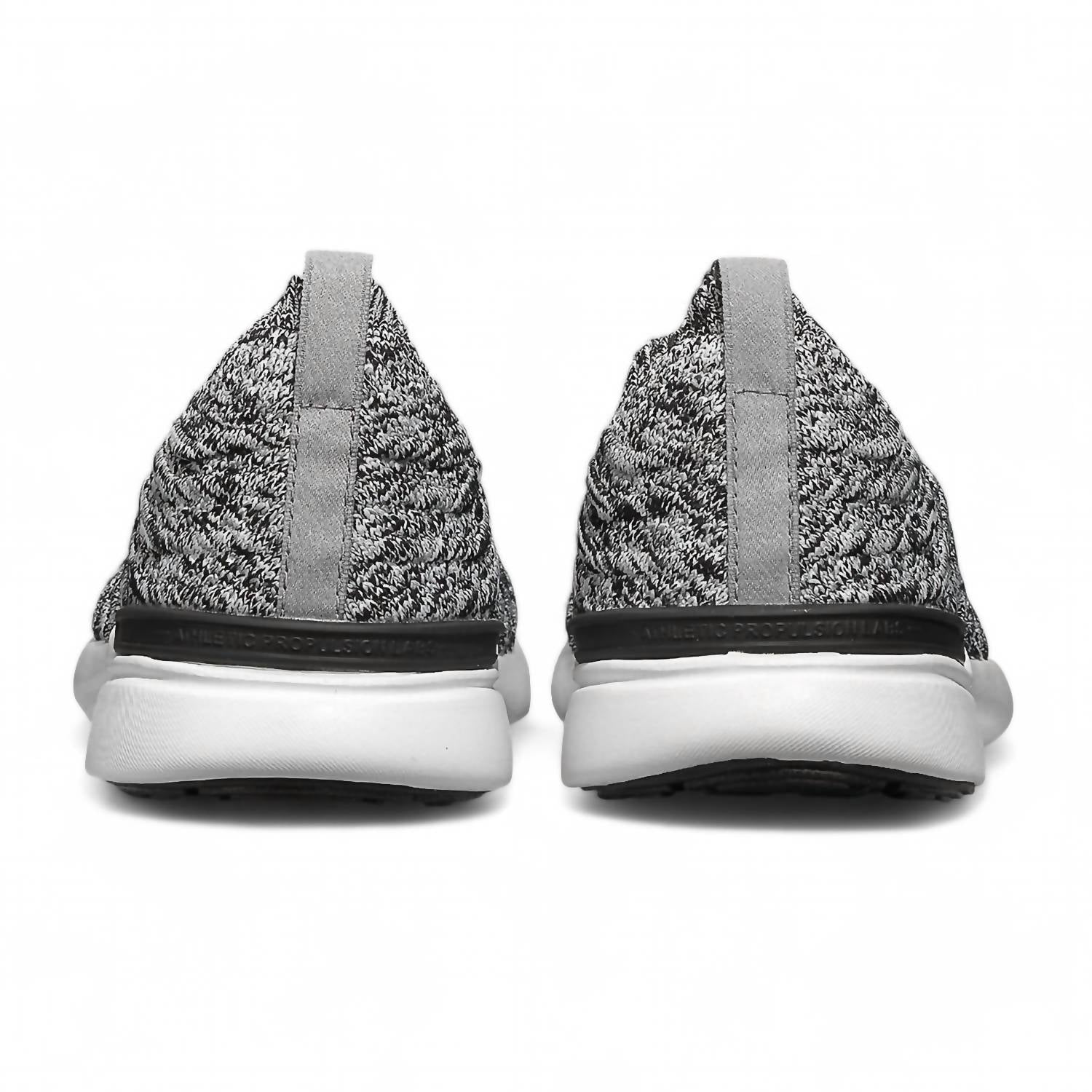 The women's Techloom Wave sneaker features a stretchy 3D upper that moves with your feet and ventilation zones to keep them cool. An internal cage offers support and a customizable fit, with a convertible design that allows lace removal for slip-on wear. The Propelium™ midsole delivers lasting comfort and energy return, paired with a durable rubber outsole and an 8mm drop for natural, efficient running.