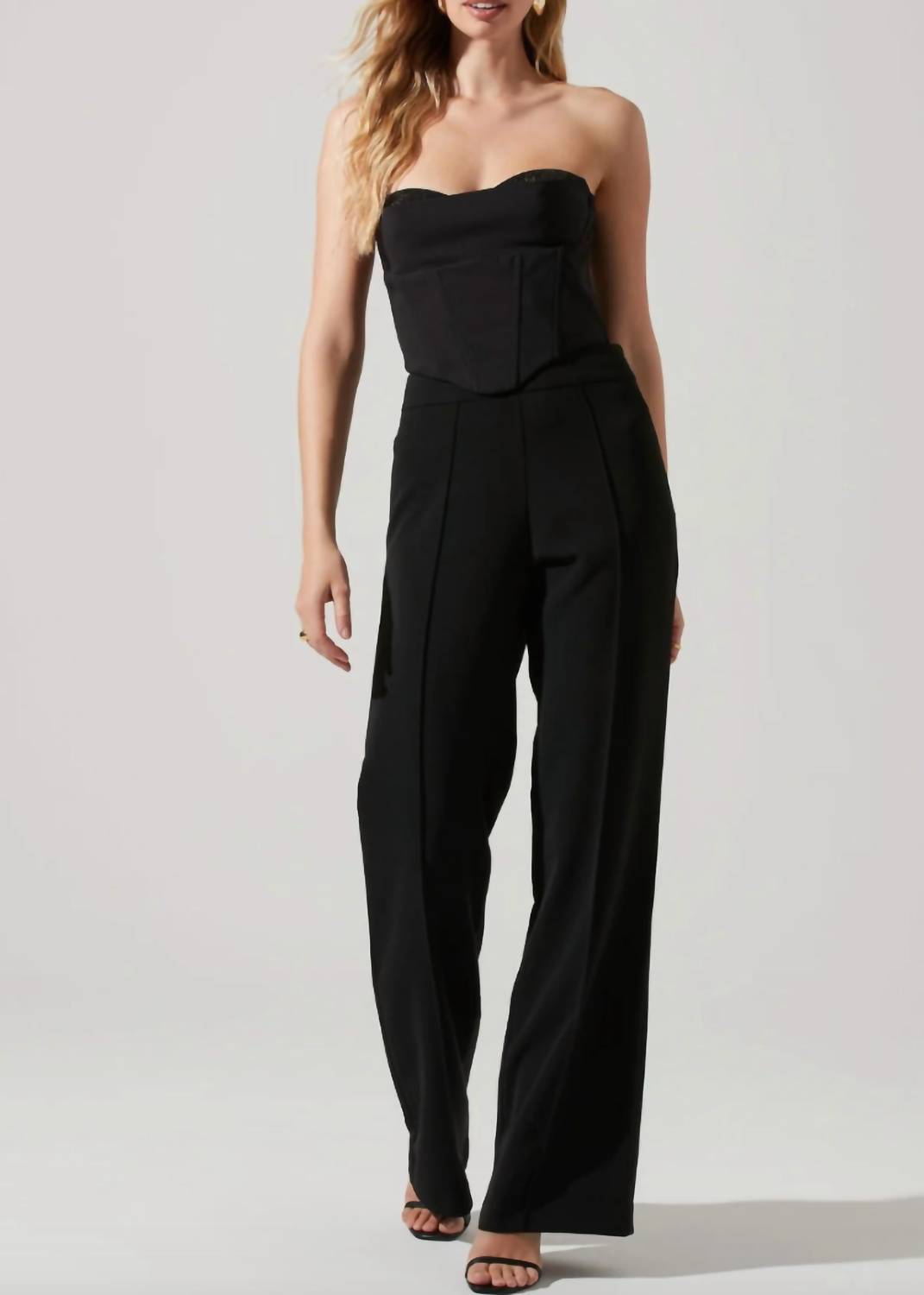 Introducing the Shanna Top by ASTR The Label, a chic black strapless piece perfect for holiday parties and summer events. Crafted from 92% Polyester, 8% Elastane, this solid bustier-style top boasts a dazzling rhinestone trim and a distinctive kerchief hemline. Closure is secured with a hook and eye, offering a seamless fit. Garment length is approximately 10.13 inches.