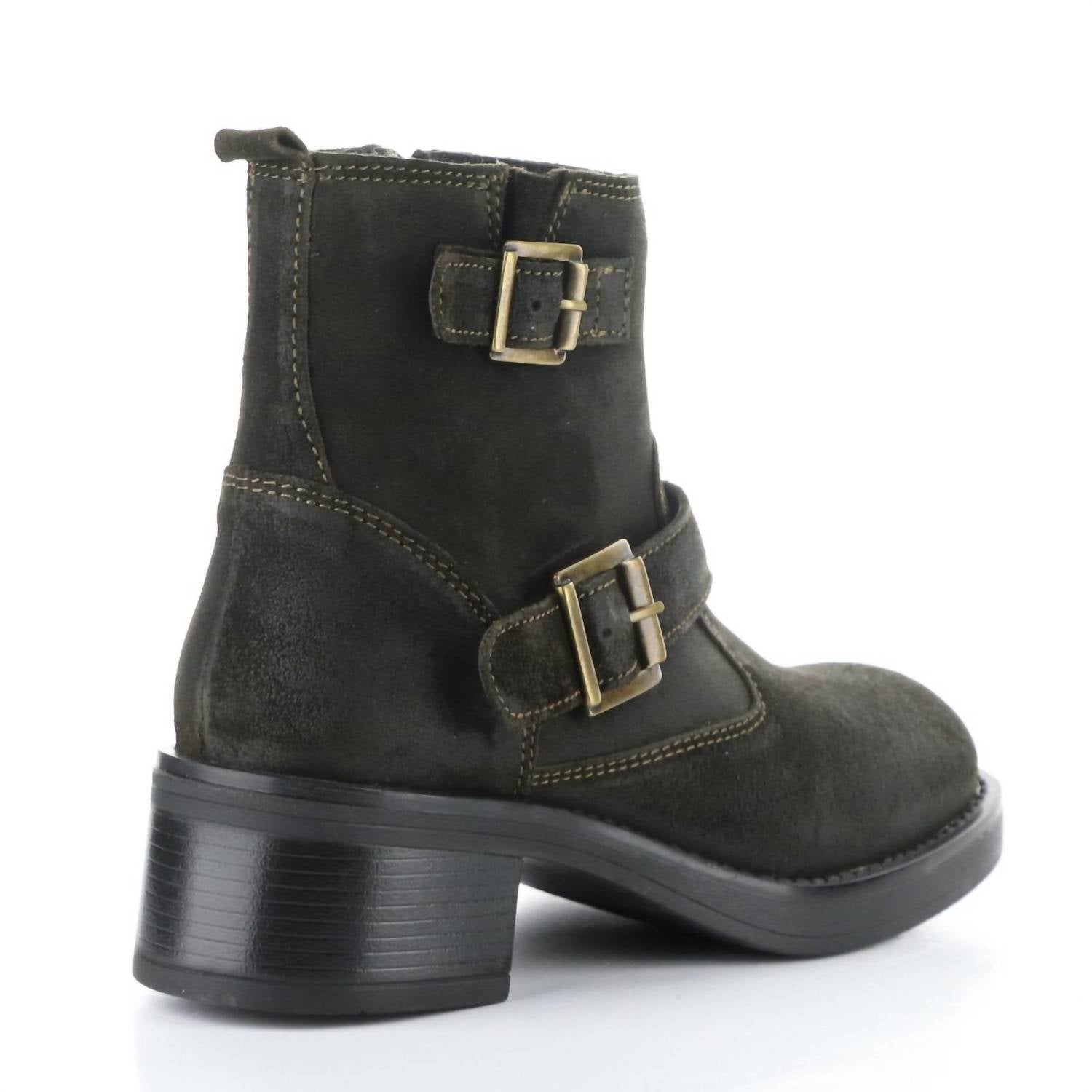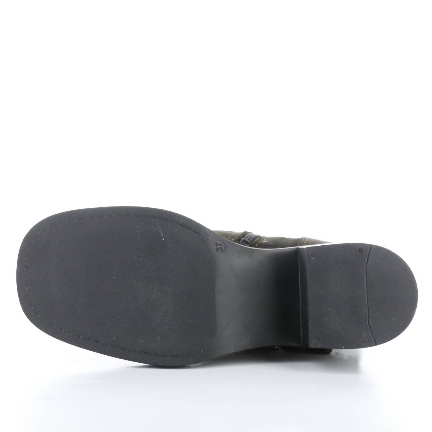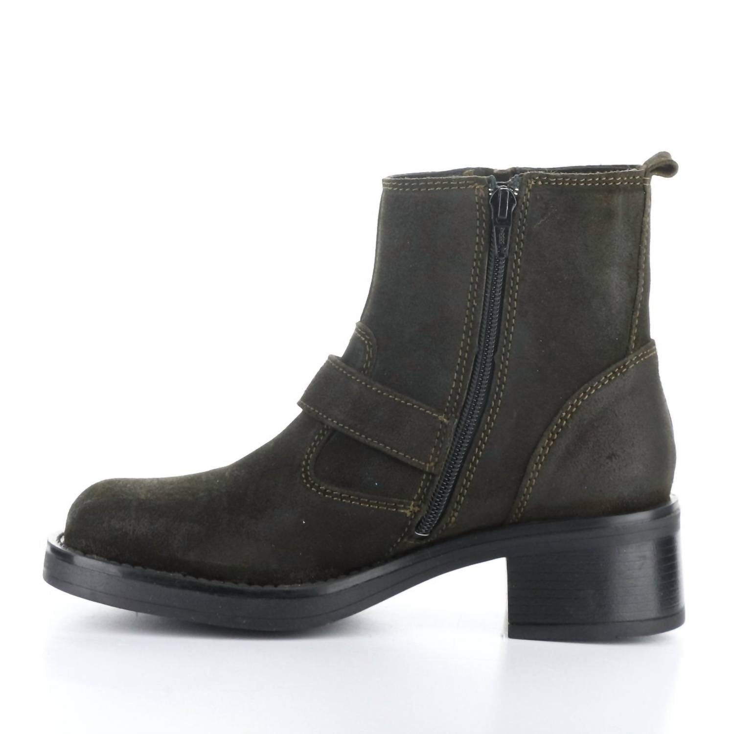 The moto boot trend is here to stay and we especially love this style. Step into style with the Women's Grata Boot by Bos. & Co., blending edgy buckled straps with soft suede leather for a nod to the rider boot trend. These olive booties are crafted in Portugal and offer waterproof protection, making them perfect for any weather. Featuring a convenient side zip for easy wear, they rest on a comfortable block heel with a height of 2 1/4" and a 3/4" platform. With a round toe design, they fit true to size in medium width, ensuring all-day comfort.