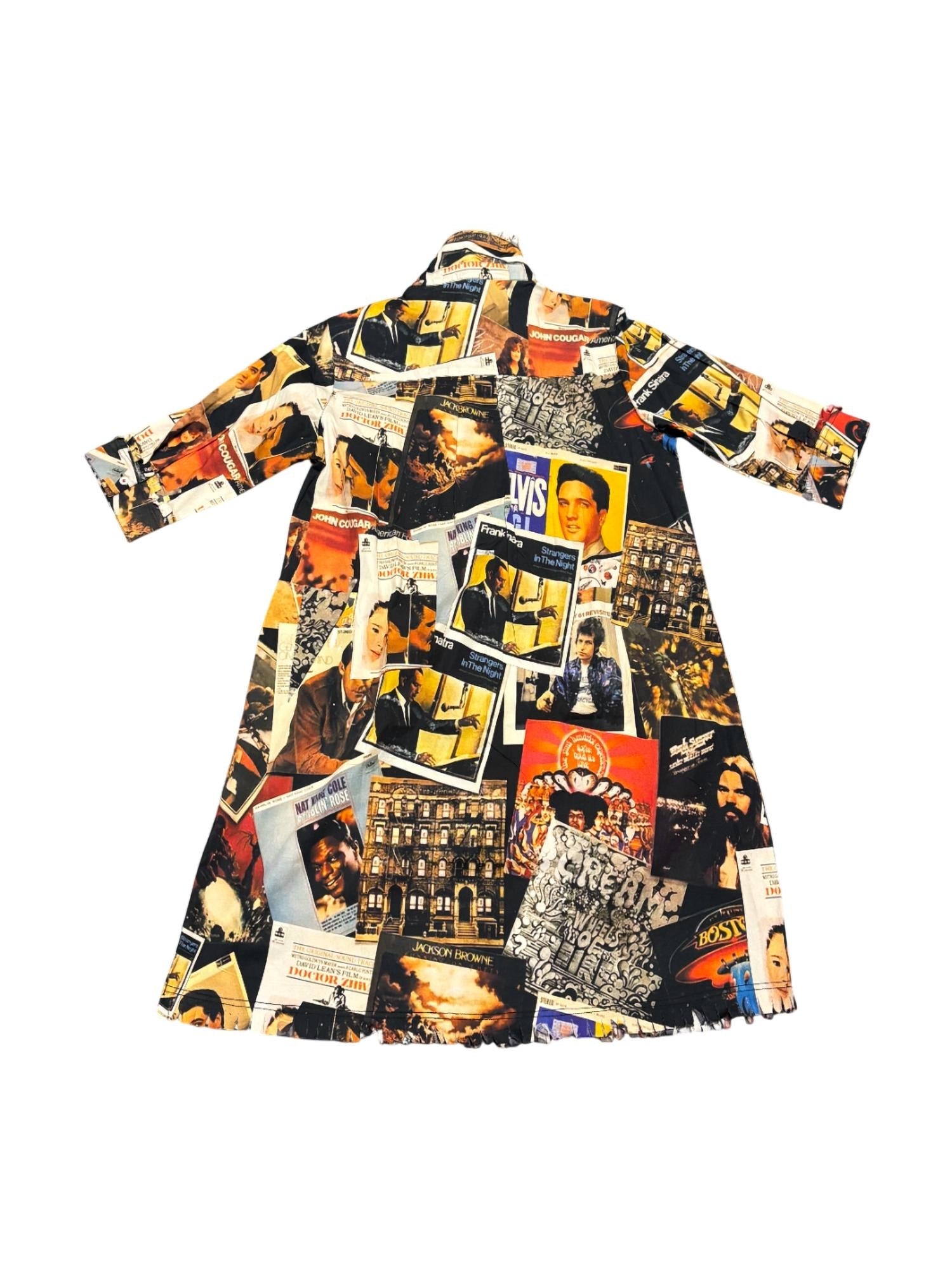 Pair with your favorite sandals for an effortlessly chic look. Enchanting addition to your wardrobe with its Rock and Roll Print. Features elegant elbow sleeves and a stylish collar, exuding a perfect blend of sophistication for your spring collection. Care instructions include hand washing for gentle maintenance. Perfect choice for thanksgiving housewarming events. 95% Cotton and 5% Spandex.
