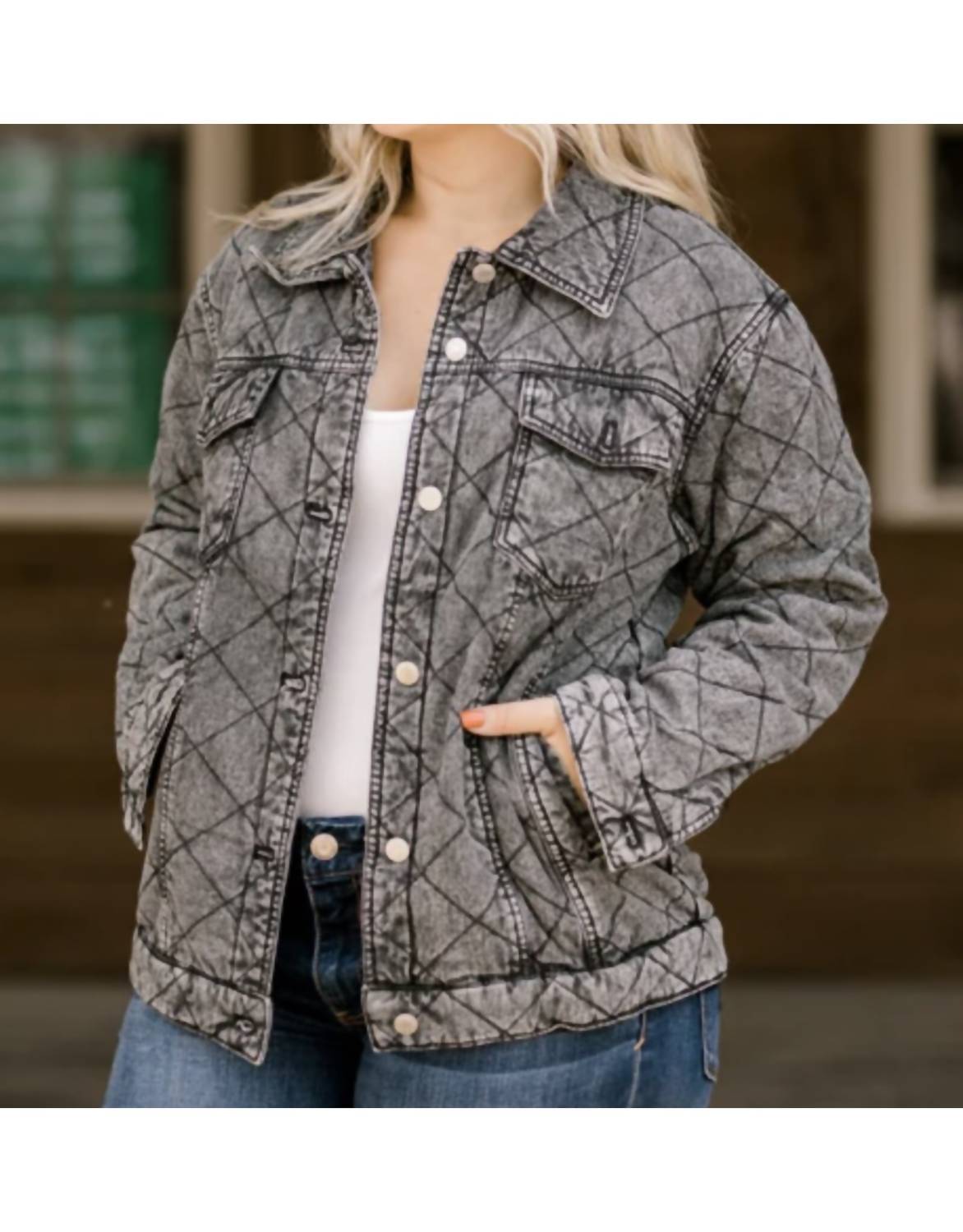 Discover the ELAN Oversize Quilted Panel Jacket, a standout in black, perfect for fall wardrobes. Designed with long sleeves and a striking quilted pattern, this jacket is crafted with 100% cotton for comfort and breathability. Featuring two exterior chest pockets and a convenient button closure, it ensures functionality meets style. Care for this garment by machine washing and tumble drying for easy maintenance.