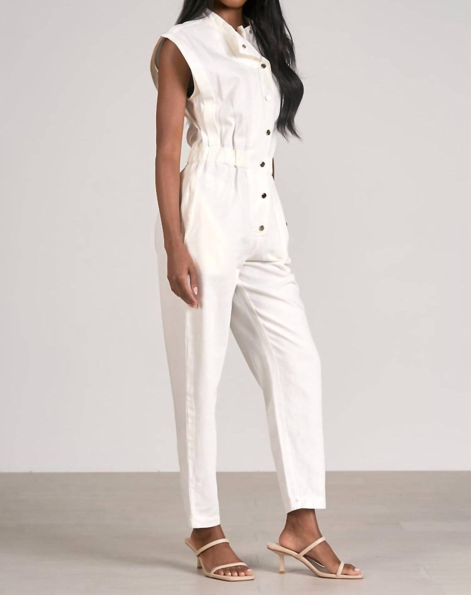 Introducing the ELAN Women's Denim Sleeveless Jumpsuit, a perfect blend of style and practicality. Crafted from solid denim, this jumpsuit features a straight leg and classic fit, adding sophistication to your look. Ideal for summer, its snap closure and functional pockets make it both chic and easy to wear. Originating from versatile streetwear trends, this piece is machine washable, ensuring fuss-free maintenance for all your fashionable outings.