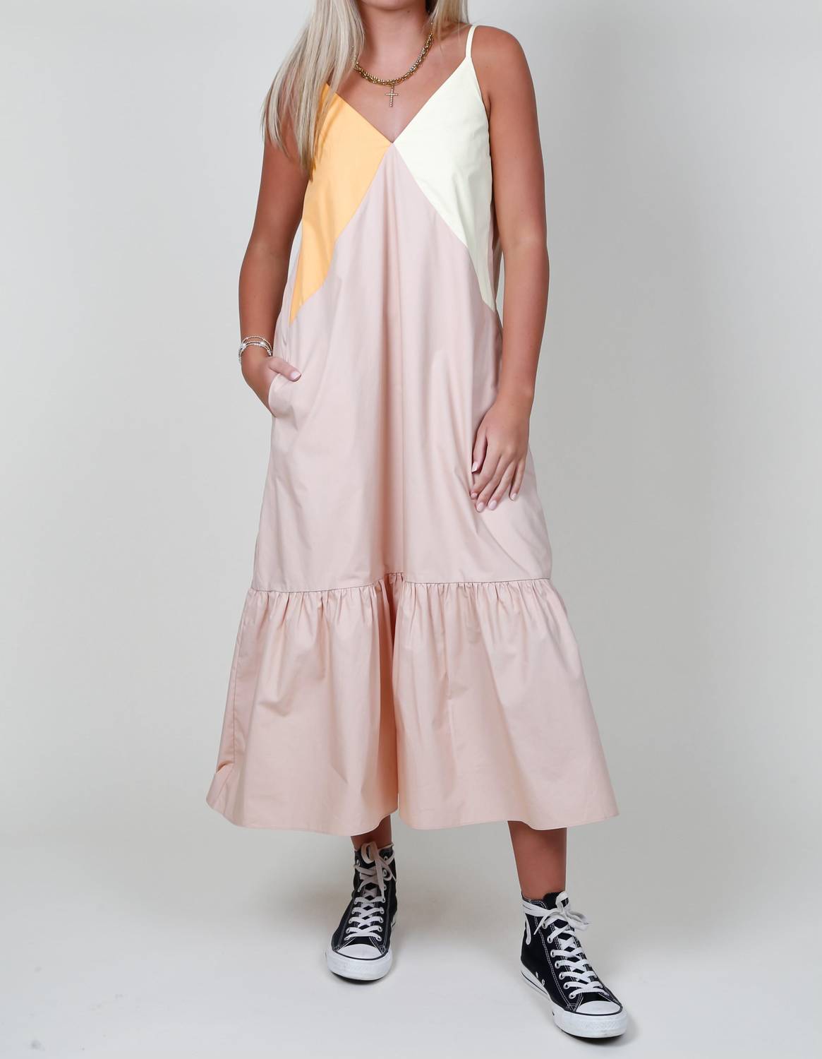 Introducing the Colorblock Maxi Dress by English Factory, a vibrant choice for a stylish summer day. This maxi dress features adjustable spaghetti straps and a deep V-neckline, offering both comfort and allure. Made from 100% cotton, it comes with side pockets and a back elastic for a relaxed fit. Closure: Pull on. Care: Hand wash cold, do not bleach, do not tumble dry, iron low. Perfect for beach days and Mother’s Day celebrations.
