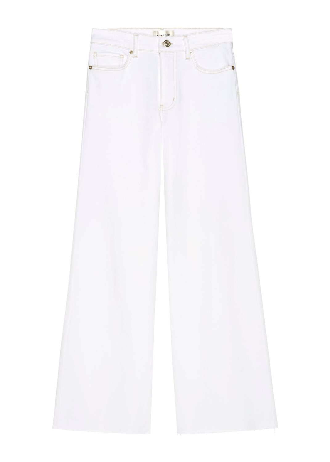FRAME's Women's Le Palazzo Crop Pant in Au Natural Clean Raw After offers a striking addition to your wardrobe with their wide-leg silhouette and cropped length. Designed for comfort and style, these pants are perfect for mixing and matching, featuring a solid pattern that complements any streetwear look. Closure: Zip closure. These versatile pants are great for vacation or spring outings, with the added convenience of pockets for practicality.