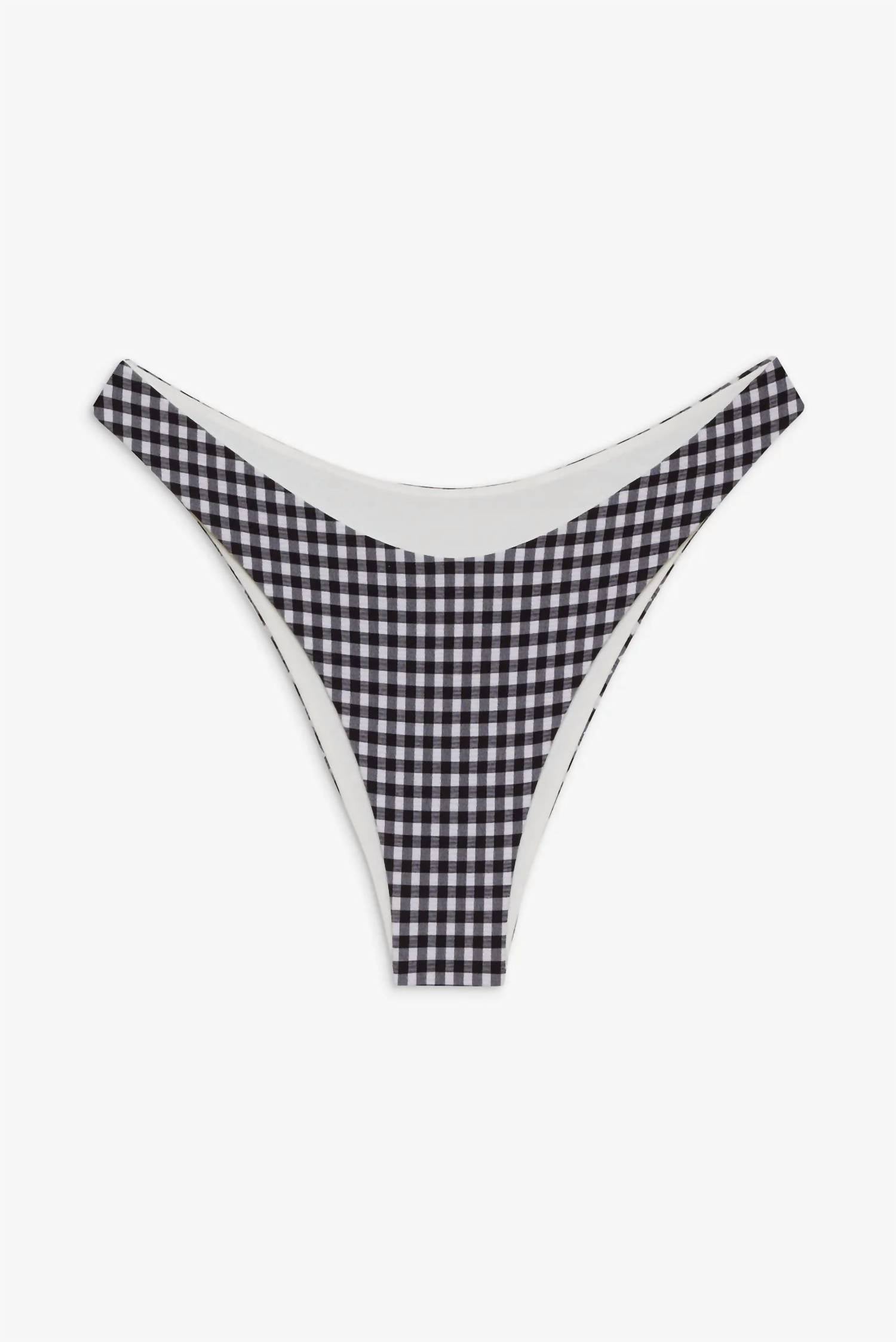 Get ready for a stylish beach day in Blackberry Gingham. Offers a cheeky coverage with a flattering high leg silhouette and a trendy low rise waist, perfect for creating a figure-enhancing look. Textured gingham pattern gives it a boho chic touch, making must-have for your summer collection. Care for this piece by hand washing it to maintain its textured design.