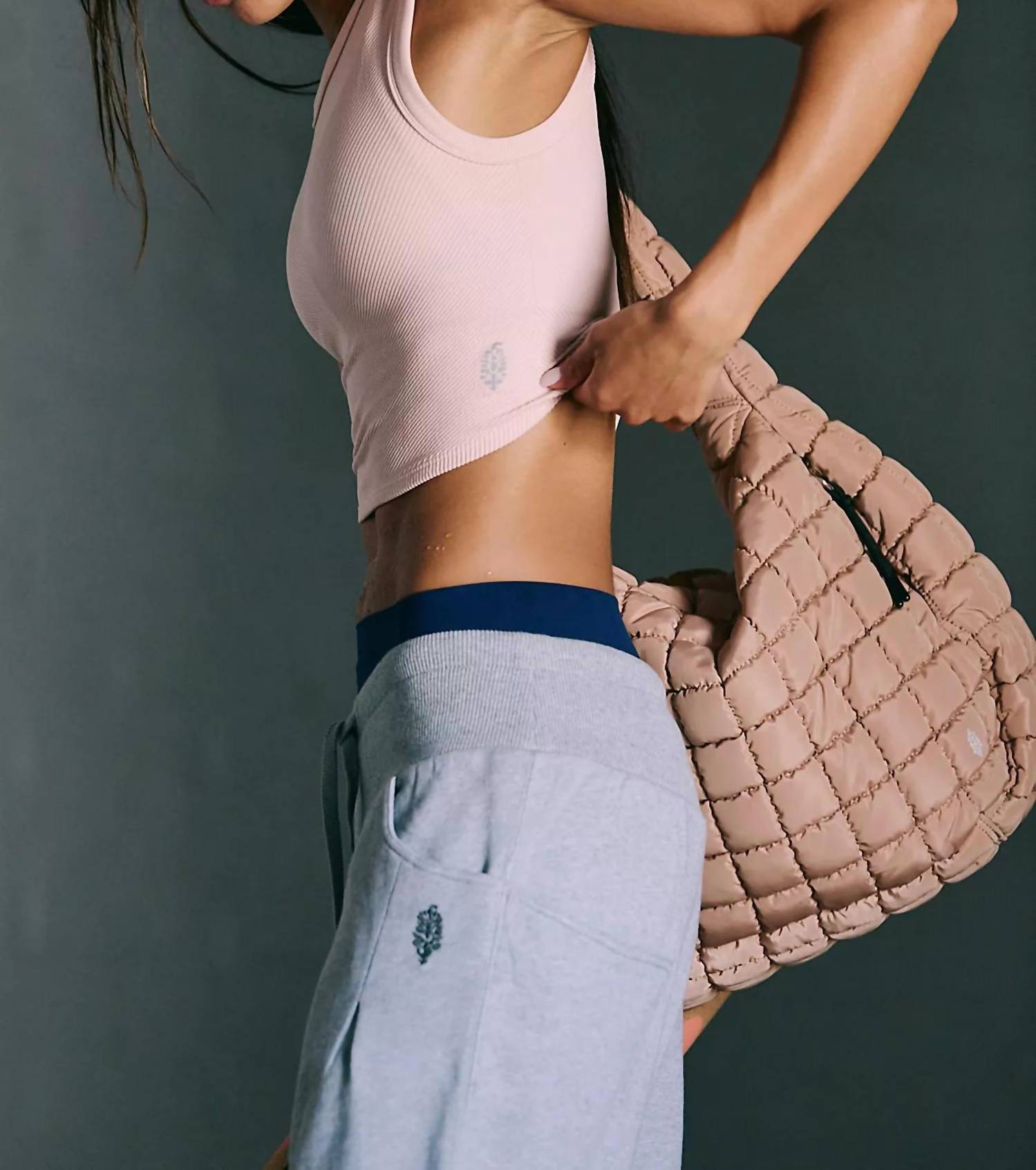 Introducing the Free Throw Muscle Tank Top by Free People in a charming Ballet Slipper color. This sleeveless top offers a sleek, cropped fit with a muscle-style silhouette and features a stretchy, ribbed knit fabrication. Expertly crafted from a compressive blend of 87% Nylon and 14% Elastane, it provides a snug yet comfortable feel, ideal for summer workouts. Closure: Pull-on style. Care: Machine wash cold. Model is wearing a size small (5'6" height, 35.5" chest, 27" waist, 36.5" hip). Made overseas for the athleisure enthusiast.